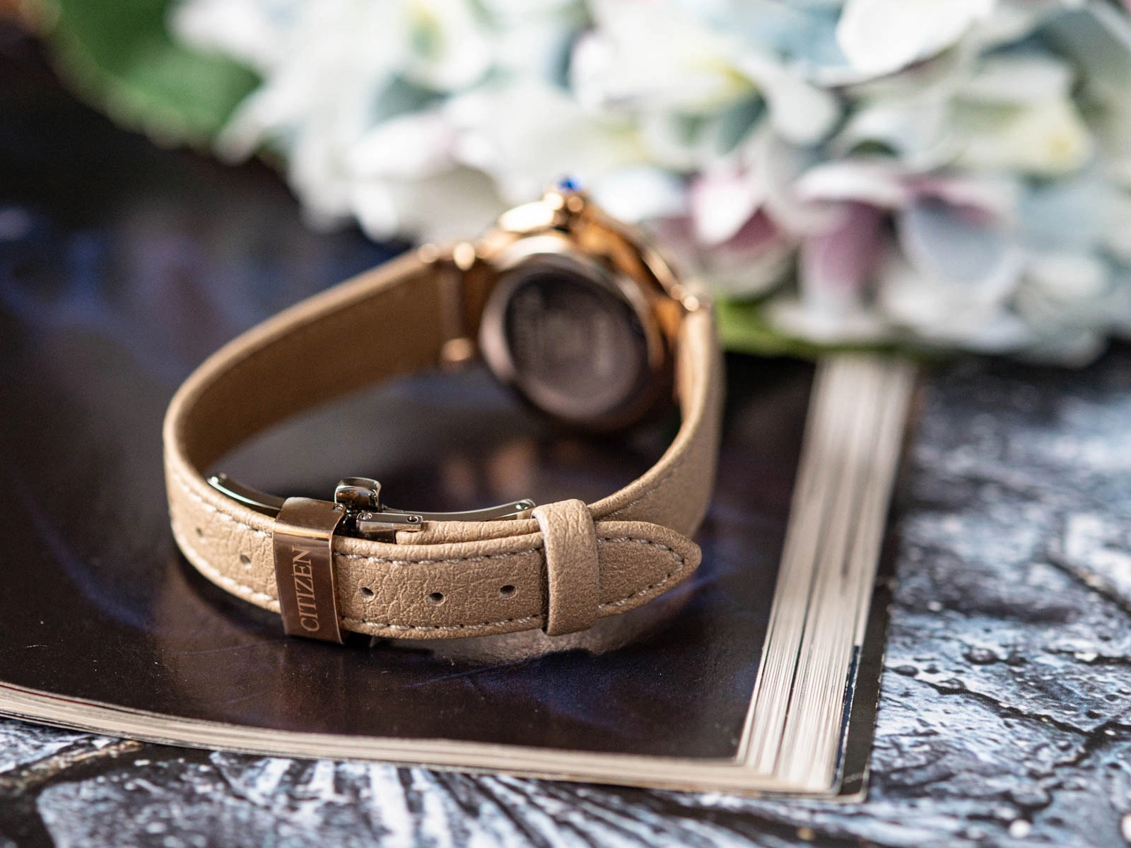- Zegarek Damski Citizen EM1073-18D Eco-Drive Citizen L Maybells beżowy na pasku. Zegarek solarny.