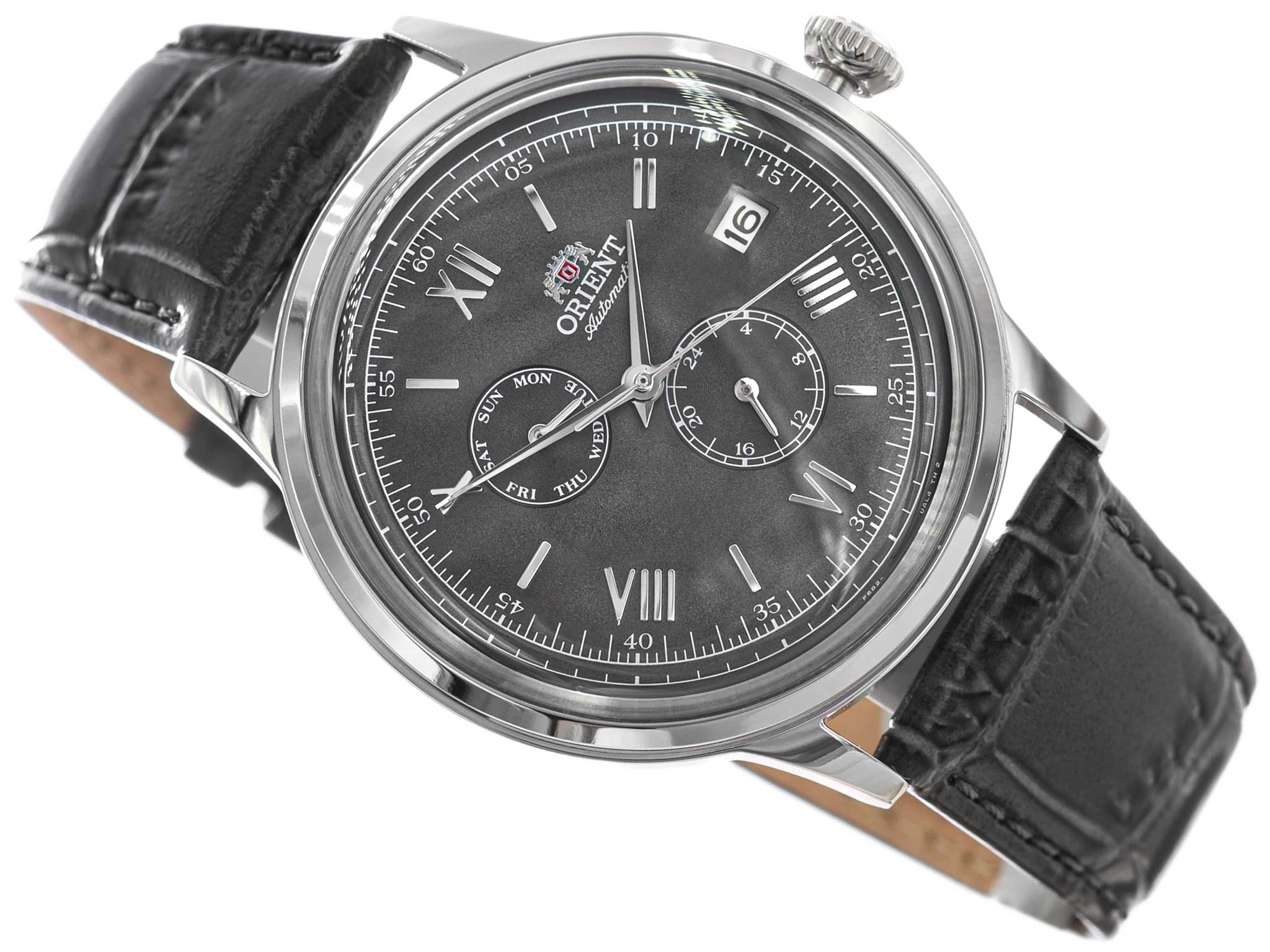 • Automatyczny Zegarek Męski Orient RA-AK0704N30B szary na pasku. Posiada funkcję datownika.