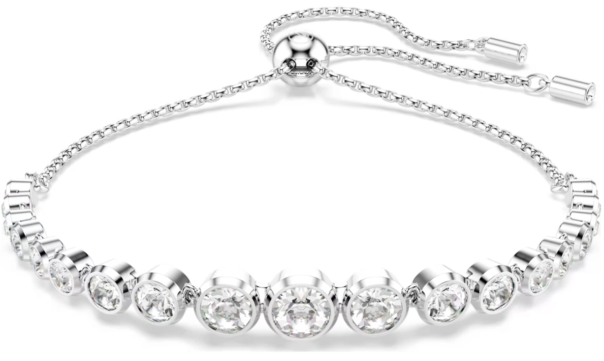 Bransoletka Swarovski 5705451 Tennis Imber to kwintesencja nowoczesnej elegancji w klasycznej formie. Subtelny łańcuszek zdobią lśniące, bezbarwne kryształy, rozmieszczone od najmniejszych przy zapięciu po największe w centralnej części, co tworzy efekt harmonijnego przejścia i wyjątkowego blasku. Każdy kamień osadzony został w precyzyjnej oprawie kasetowej, która pięknie odbija światło przy każdym ruchu dłoni. Pokrycie rodem nadaje biżuterii chłodny, metaliczny połysk, podkreślając jej luksusowy charakter i chroniąc powierzchnię przed matowieniem. Starannie zaprojektowane zapięcie kulkowe zapewnia wygodę noszenia i idealne dopasowanie do nadgarstka.