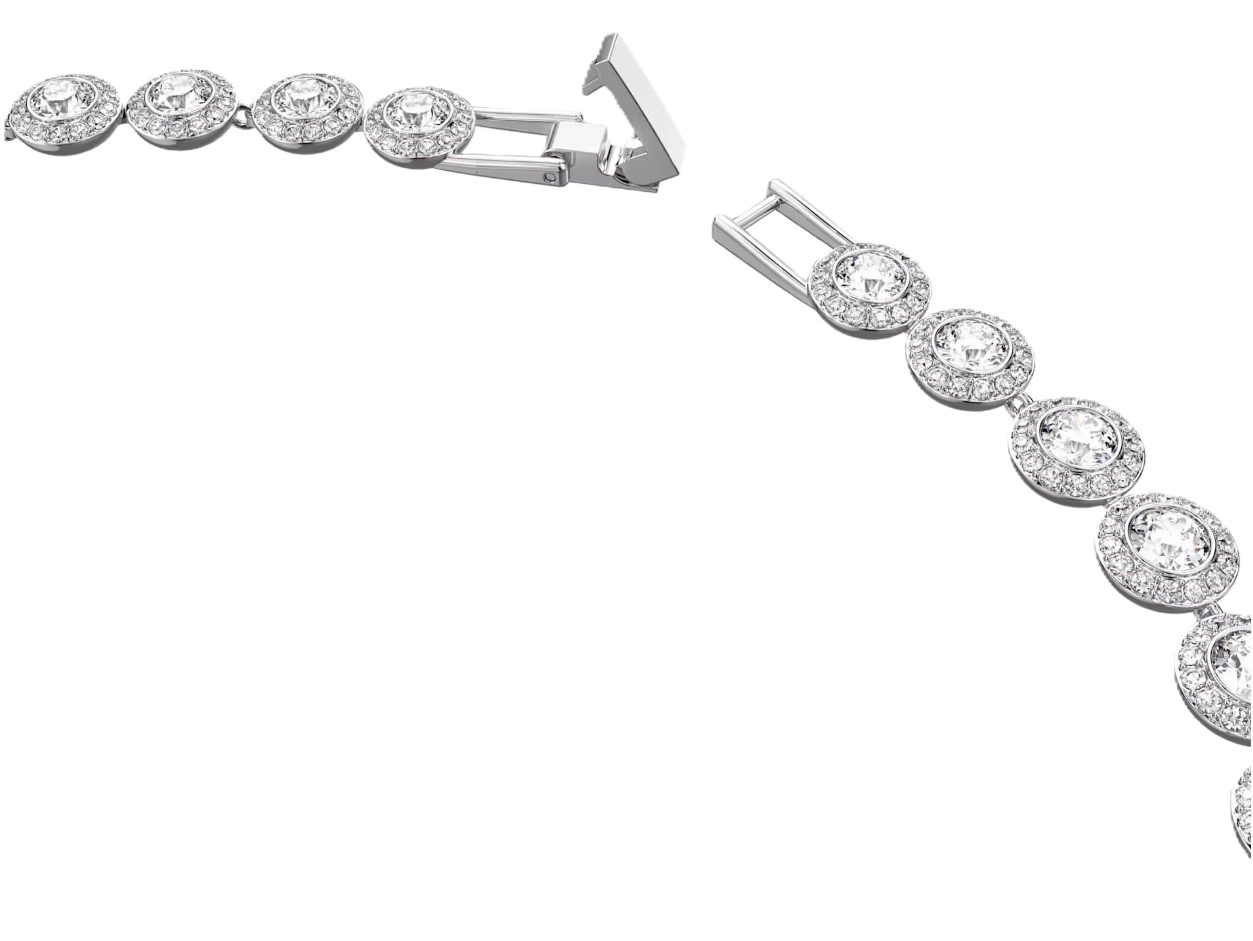 Naszyjnik Swarovski Una Angelic 5117703 emanuje klasycznym blaskiem i wyrafinowaną elegancją, będąc jednym z najbardziej rozpoznawalnych projektów domu Swarovski. Jego kompozycja oparta jest na harmonijnym układzie okrągłych kryształów, które tworzą subtelny krąg światła, otoczony delikatnym wieńcem drobniejszych, bezbarwnych kamieni osadzonych w misternie opracowanej oprawie brukowej. Szlachetna powłoka z rodu nadaje biżuterii chłodny, lustrzany połysk, podkreślając doskonałość każdego detalu. Precyzyjnie zintegrowane zapięcie zatrzaskowe zachowuje spójność formy, a możliwość regulacji długości sprawia, że naszyjnik doskonale dopasowuje się do sylwetki. To biżuteria, która łączy klasykę z nowoczesnym wyrafinowaniem, dodając światła zarówno dziennym, jak i wieczorowym stylizacjom.