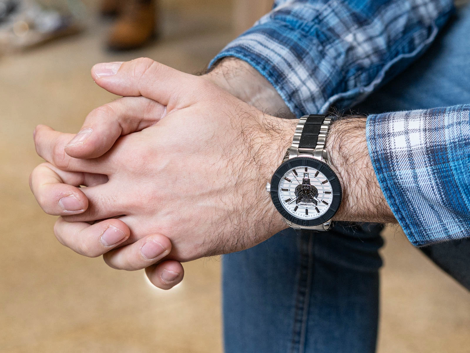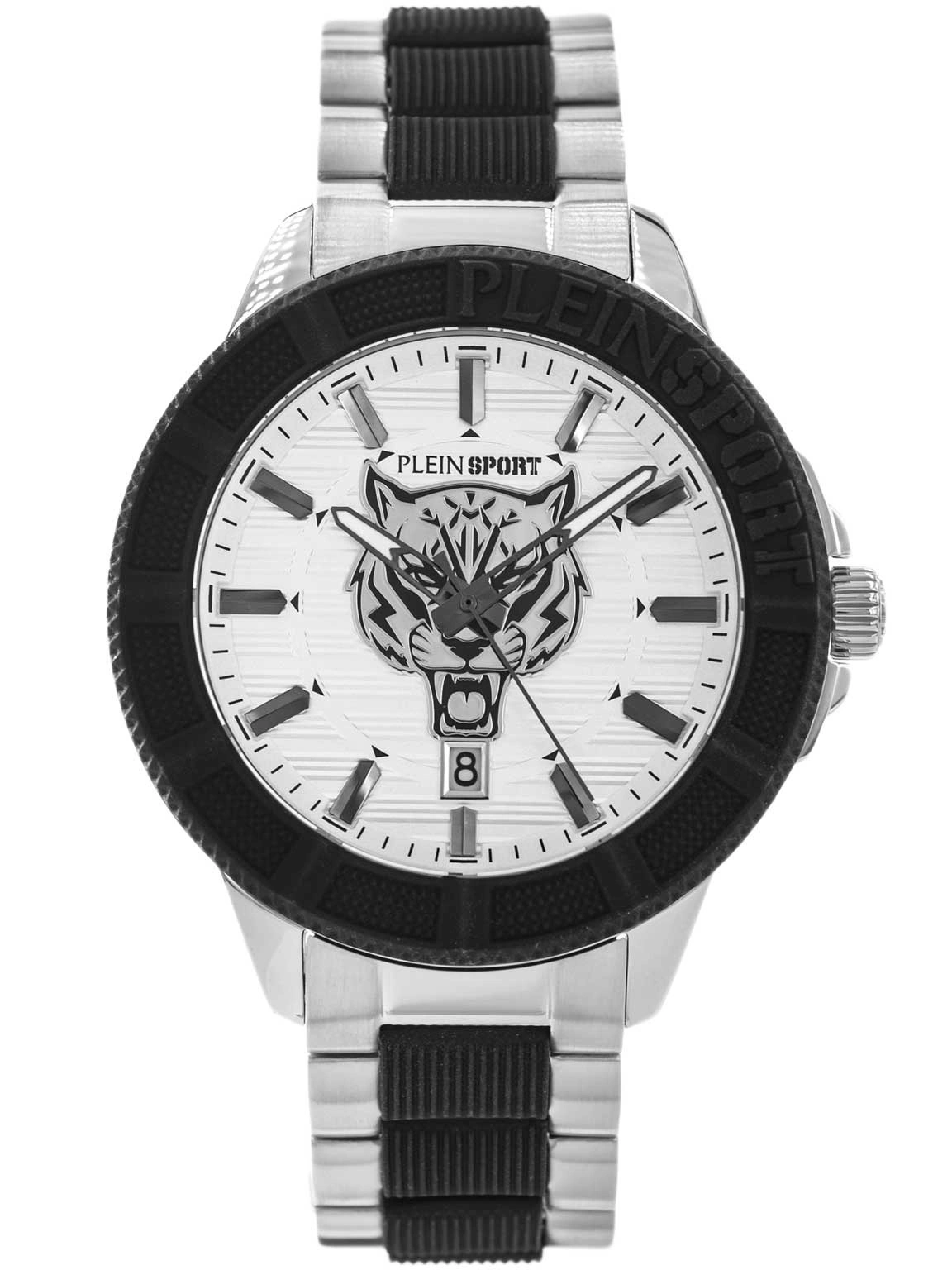 - Zegarek Męski Plein Sport PSAEA0624 srebrno-czarny na bransolecie. Posiada funkcję datownika i neobrite.