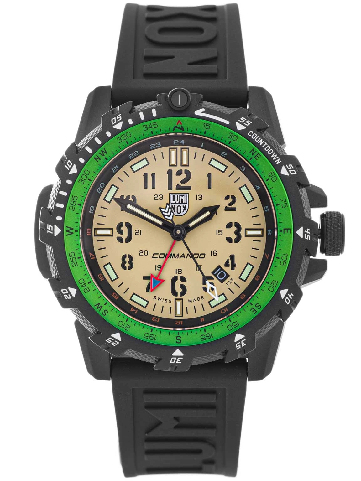 Technologia Luminox Light Technology nadaje zegarkowi wyjątkowe właściwości podświetlenia, pozwalając na odczyt godziny w całkowitej ciemności. W połączeniu z antyrefleksyjnym szkłem szafirowym pozwala na pewny odczyt czasu w każdych warunkach, zarówno w jasnym słońcu, jak i podczas nocnych operacji terenowych. Między indeksami godziny czwartej i piątej umieszczono praktyczny dodatek w postaci okienka datownika. Mechanizm kwarcowy Ronda 515.24H, szwajcarskiej produkcji, jest sercem zegarka, zapewniającym niezwykłą precyzję i niezawodność przez cały okres działania baterii. Zakręcana koronka i dekiel zwiększają szczelność konstrukcji, a wodoszczelność na poziomie 200 metrów pozwala na pływanie i nurkowanie z akwalungiem, czyniąc z zegarka narzędzie sprawdzone w ekstremalnych sytuacjach. W modelu zastosowano również jednokierunkowy obrotowy bezel pozwalający na łatwa kontrolę czasu w zanurzeniu. Skala kompasu na kontrastującym zielonym pierścieniu ułatwia orientację w terenie i wyznaczanie azymutu, co dodatkowo podkreśla wojskowy charakter zegarka.