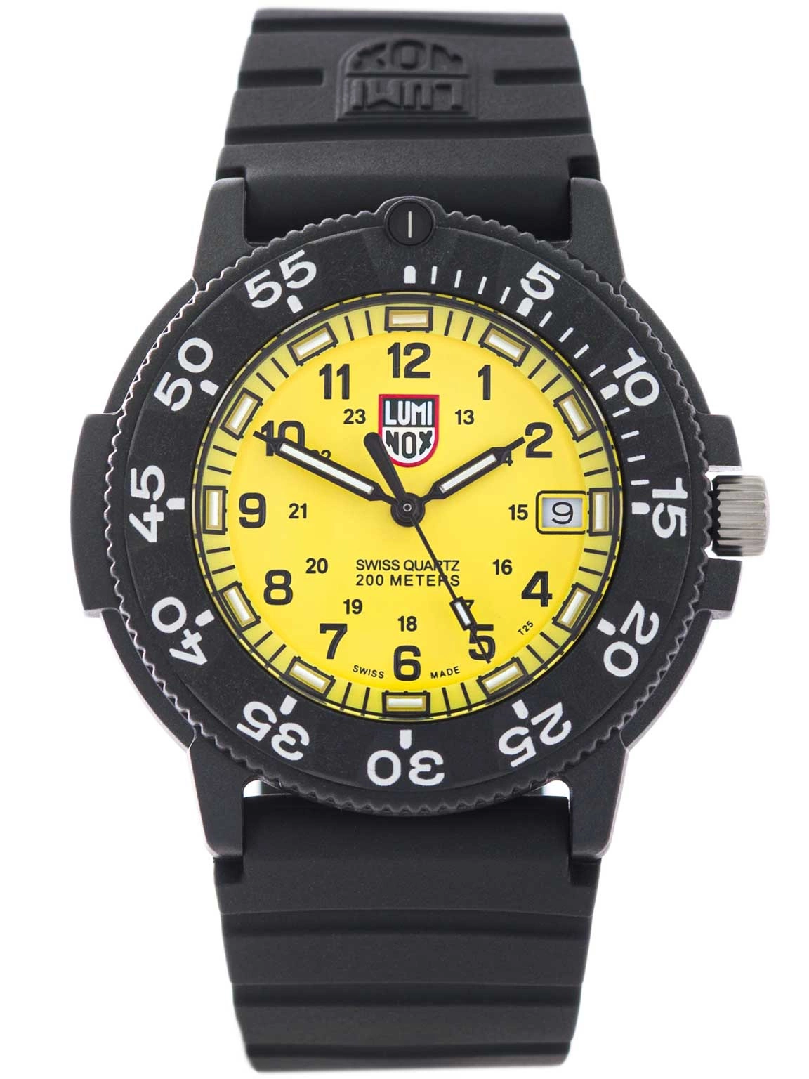Zegarek Luminox XS.3005.F Original Navy Seal stanowi doskonałe połączenie militarnych inspiracji i funkcjonalności typowej dla modeli przeznaczonych do zadań specjalnych. Koperta oraz pasek wykonane zostały z trwałego materiału w klasycznej czerni, co nadaje zegarkowi surowy, taktyczny charakter, a jednocześnie gwarantuje komfort noszenia. Żółta tarcza stanowi wyrazisty kontrast dla czarnych i białych wskazówek, a dzięki technologii Luminox Light Technology (LLT) zarówno wskazówki, jak i indeksy pozostają czytelne w całkowitej ciemności. Mechanizm kwarcowy Ronda 515 Swiss Made zapewnia precyzyjny chód zegarka, a zakręcany dekiel oraz wodoszczelność do 200 metrów chronią go podczas pływania i nurkowania. Obrotowy bezel umożliwia dokładne odmierzanie czasu spędzonego pod wodą lub w trakcie innych aktywności terenowych. Datownik umieszczony na godzinie trzeciej zapewnia szybki odczyt aktualnego dnia miesiąca, a mineralne szkło skutecznie zabezpiecza cyferblat przed zarysowaniami i uszkodzeniami mechanicznymi. Model Luminox XS.3005.F Original Navy Seal łączy lekkość, zgrabną konstrukcję i przygodowy charakter zegarka z niezawodnością sprawdzoną w ekstremalnych warunkach. Każdy element – od tarczy, poprzez bezel i pasek, po mechanizm – został zaprojektowany z myślą o trwałości, precyzji i maksymalnej funkcjonalności, czyniąc z tego modelu praktyczny i elegancki czasomierz wojskowy, gotowy na wyzwania codzienności oraz ekstremalnych misji.
