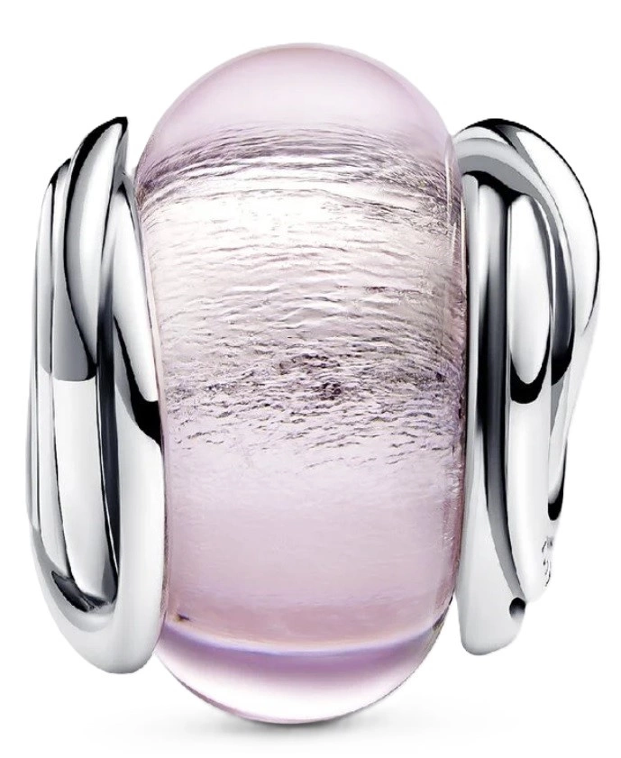 Charms Pandora ze srebra i różowego szkła Murano 793241C00 to subtelna, artystyczna interpretacja idei nieskończonej miłości. Delikatne różowe szkło weneckie, w którego wnętrzu zatopiono srebrną folię, tworzy efekt miękkiego blasku i głębi, przywodząc na myśl ciepło emocji i trwałość uczuć. Otaczające rdzeń asymetrycznie splecione okręgi ze srebra symbolizują więź, której nie sposób przerwać – relację pełną bliskości, zrozumienia i harmonii. To charms, który zachwyca prostotą formy i bogactwem znaczeń, będąc doskonałym uzupełnieniem kompozycji Pandora Moments.