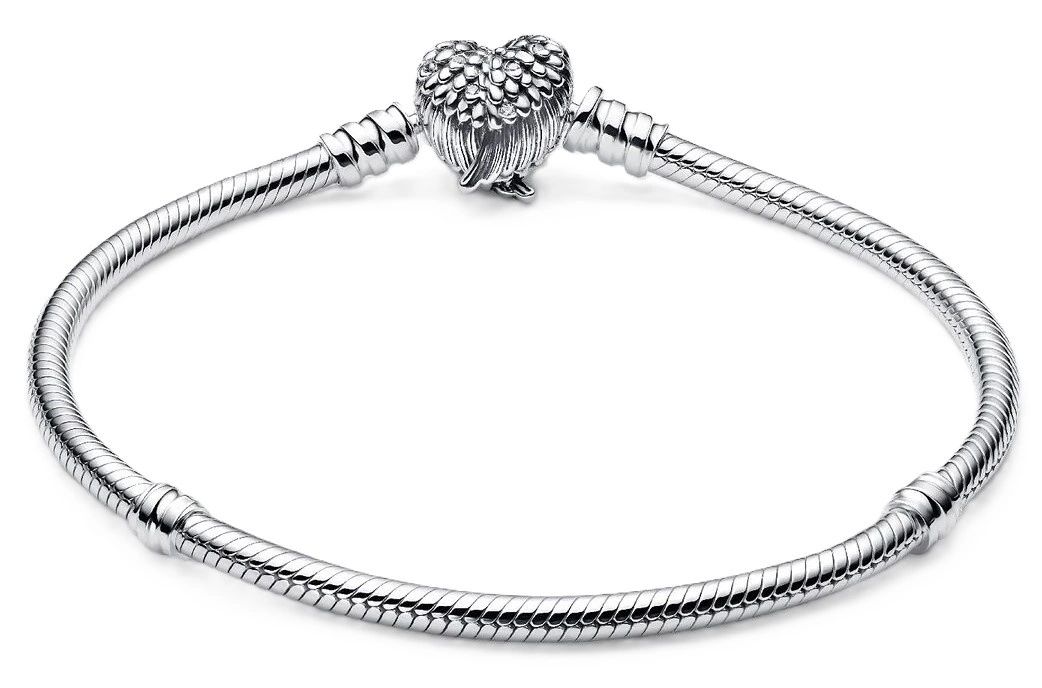 Srebrna bransoletka Pandora 590727CZ-17 o długości 17 cm łączy w sobie subtelną elegancję i możliwość pełnej personalizacji. Jej delikatny splot wężykowy nadaje lekkości, a zapięcie w kształcie serca, utworzonego z dwóch skrzydeł, wprowadza romantyczny akcent. Bransoletka pięknie prezentuje się zarówno solo, jak i jako baza do tworzenia unikatowych kompozycji z charmsami, zawieszkami czy klipsami.