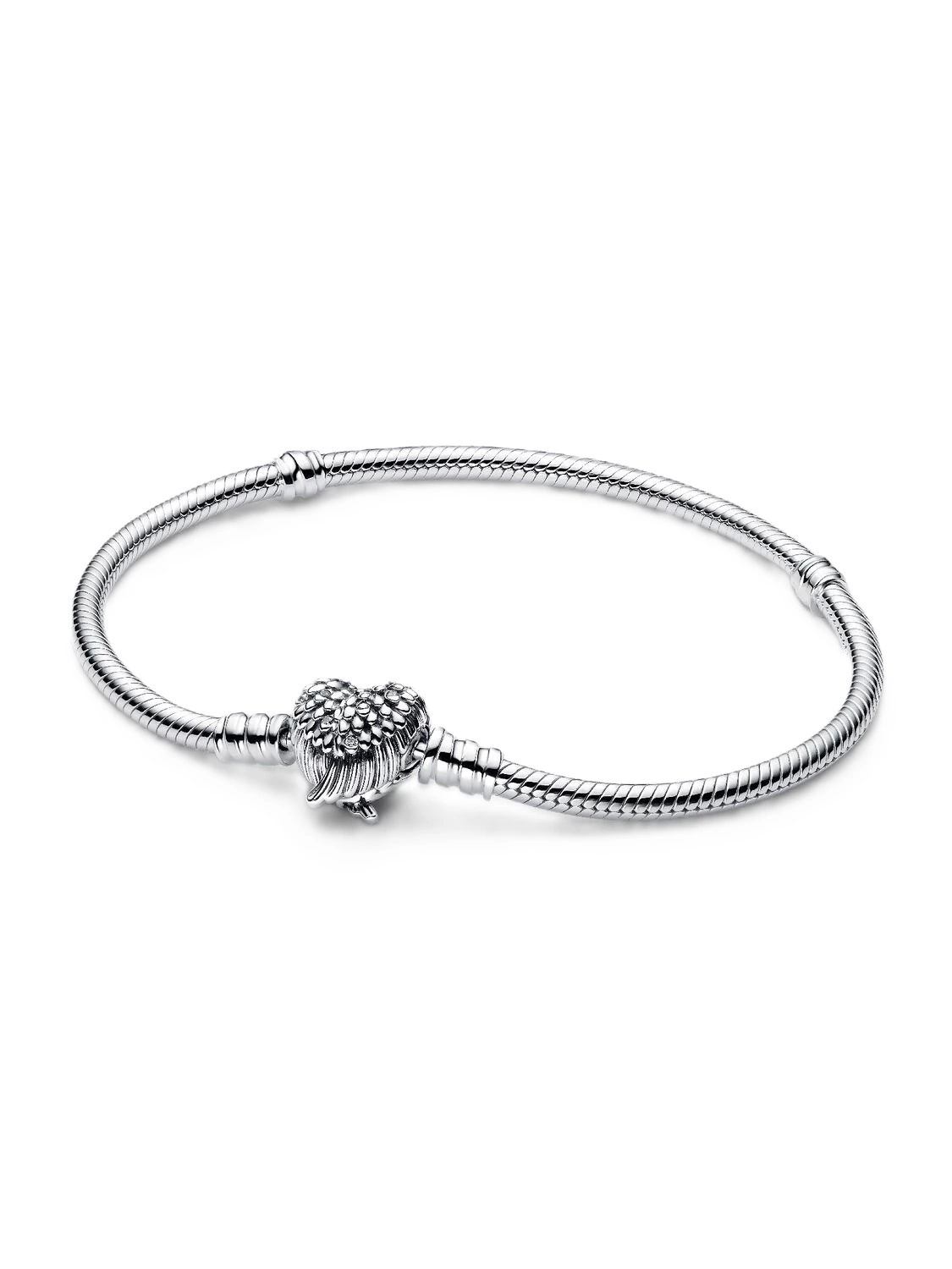 • Bransoletka damska o splocie wężykowym z zapięciem w kształcie uskrzydlonego serca Pandora 593680C01-17 srebrna