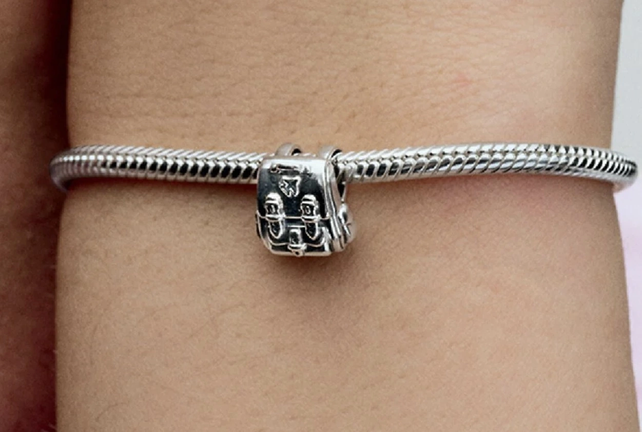 Charms Pandora Plecak pełen przygód 793351C00 to srebrna ozdoba, która symbolizuje pasję do odkrywania i radość z każdej podróży. Miniaturowy plecak wykonany ze srebra próby 925 zachwyca realistycznymi detalami, a grawerowany napis „Life is for adventure” przypomina o odwadze, ciekawości świata i sile marzeń. Ten charms wprowadza do bransoletki Pandora Moments energię przygody i pozytywny, inspirujący akcent.