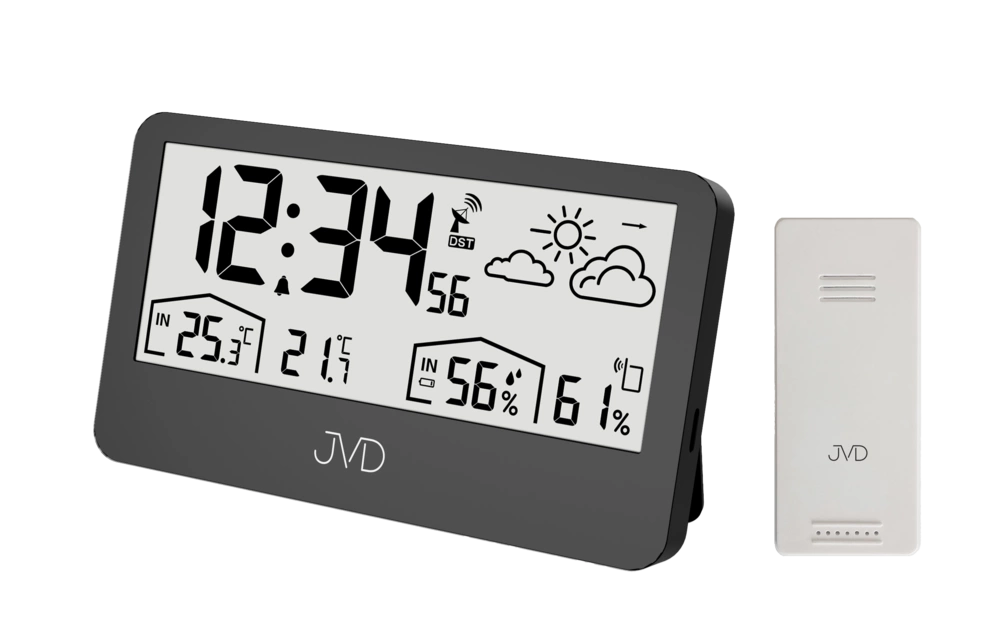 - Stacja pogody JVD RB3407.1 - czarna. Posiada funkcję radio control, alarm, zegar, kalendarz, higrometr