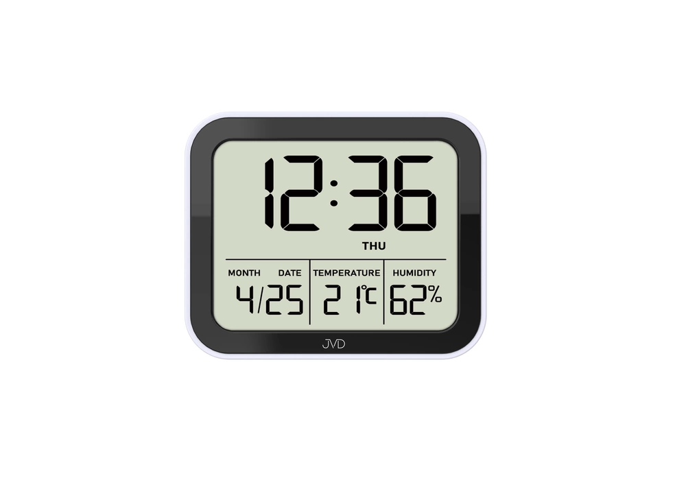 - Zegar JVD SB774.1 - biały. Wyposażony w termometr i higrometr, datownik