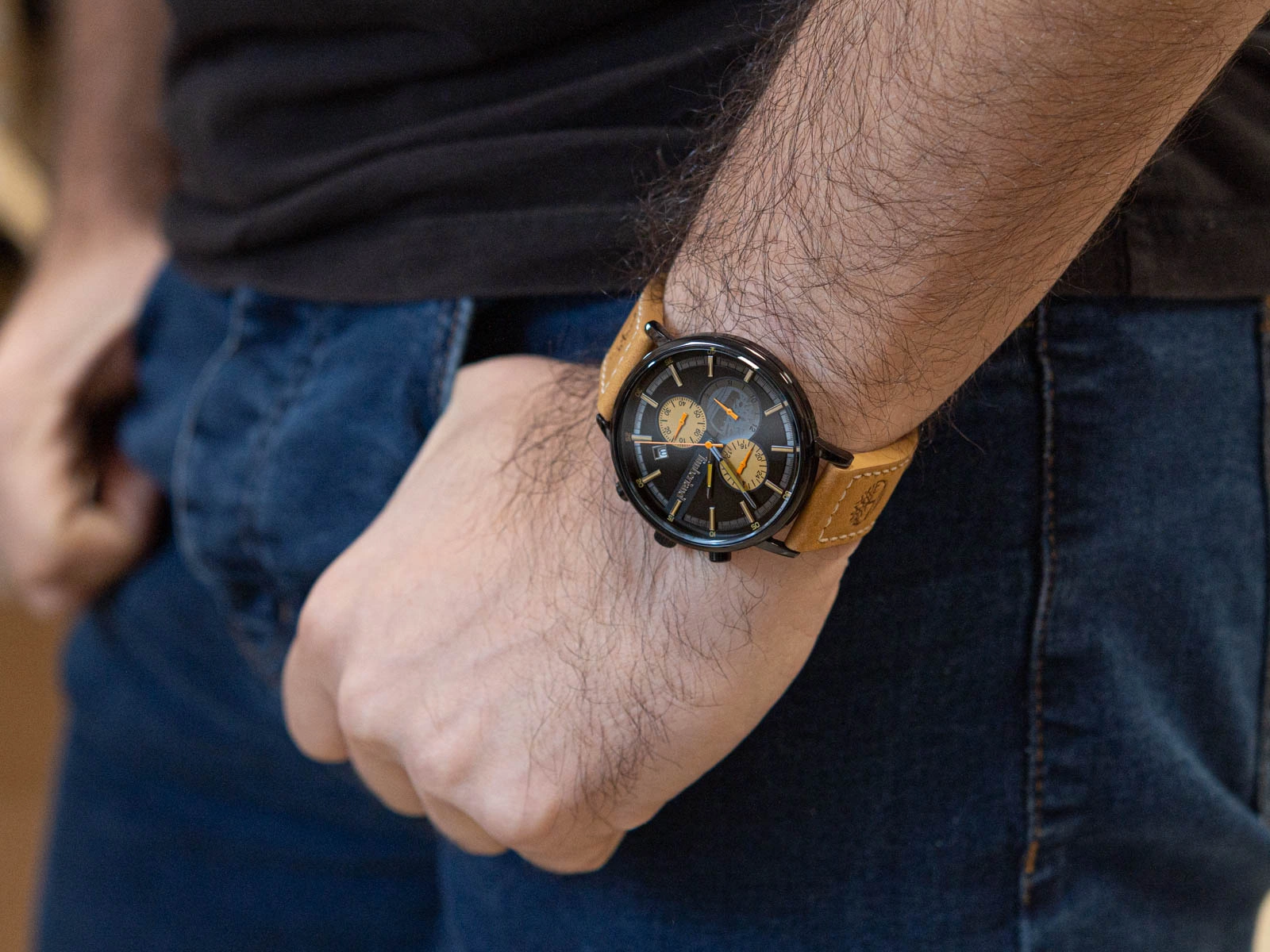 Timberland TDWGF2182902 to zegarek, w którym nowoczesna estetyka spotyka się z charakterystyczną dla marki siłą wyrazu. Czarna koperta o matowym wykończeniu nadaje konstrukcji głębi i eleganckiej surowości, podkreślając przy tym solidność wykonania. Jej masywny kształt harmonizuje z czarną tarczą, na której rozmieszczono trzy subtarcze chronografu – detale, które wprowadzają wizualny kontrast i dynamikę formy. Układ cyferblatu zachowuje pełną czytelność, a gra odcieni czerni i brązu tworzy spójną, męską kompozycję o wyważonym charakterze. Między indeksami godziny czwartej i piątej umieszczono praktyczny dodatek w postaci okienka datownika. Cyferblat zabezpiecza szkło mineralne. Wnętrze zegarka skrywa precyzyjny mechanizm kwarcowy, gwarantujący niezawodne odmierzanie czasu. Brązowy pasek ze skóry naturalnej, zapinany na klasyczną sprzączkę, dopełnia całości, wprowadzając element ciepła i tradycyjnego rzemiosła. Timberland TDWGF2182902 to model, który łączy w sobie siłę i elegancję, zachowując przy tym charakterystyczny, przygodowy duch marki. Doskonale odnajduje się w codziennym rytmie współczesnego mężczyzny – dyskretny, lecz wyrazisty, funkcjonalny, a zarazem stylowy. Oferowany w oryginalnym pudełku Timberland, stanowi idealny wybór dla osób ceniących równowagę między nowoczesnym designem a ponadczasową solidnością.