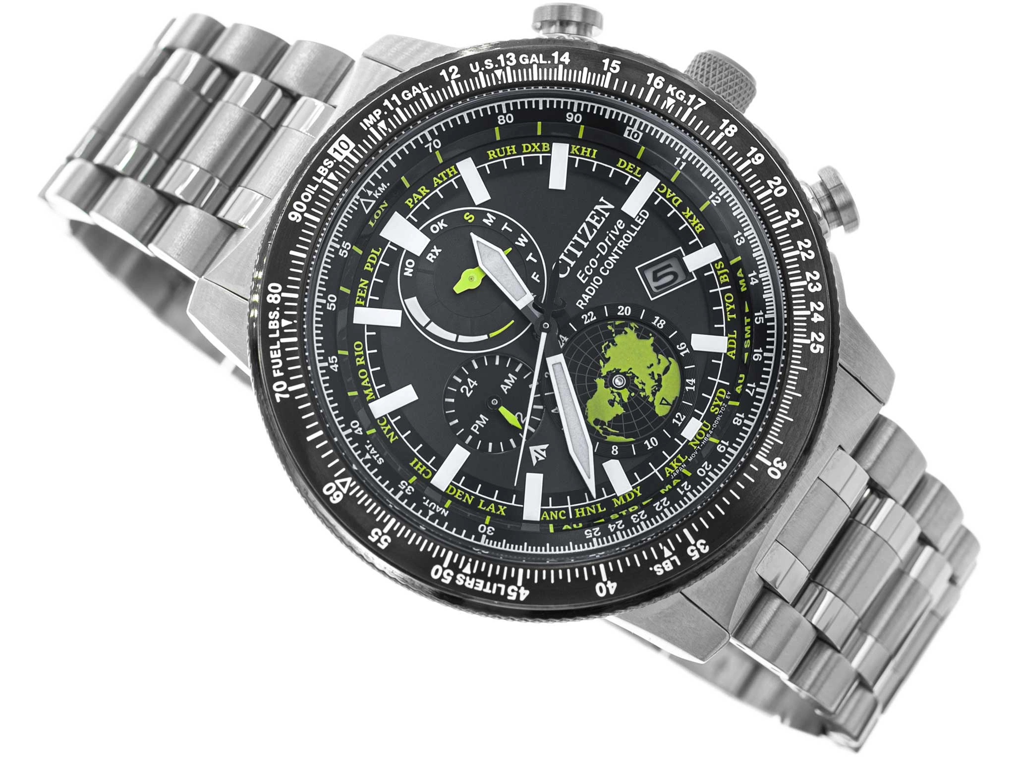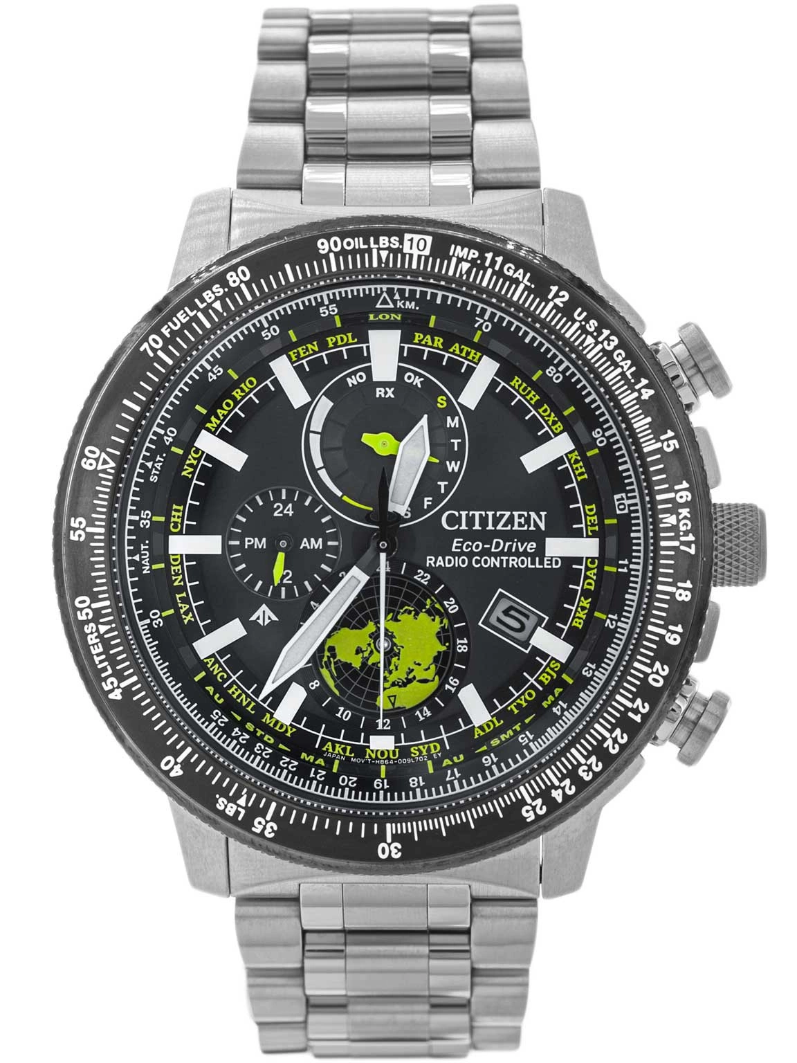 - Solarny Zegarek Męski Citizen BY3006-53E srebrny na bransolecie, posiada funkcje takie jak dual-time, datownik, neobrite, radio controlled. Zegarek wodoszczelny.