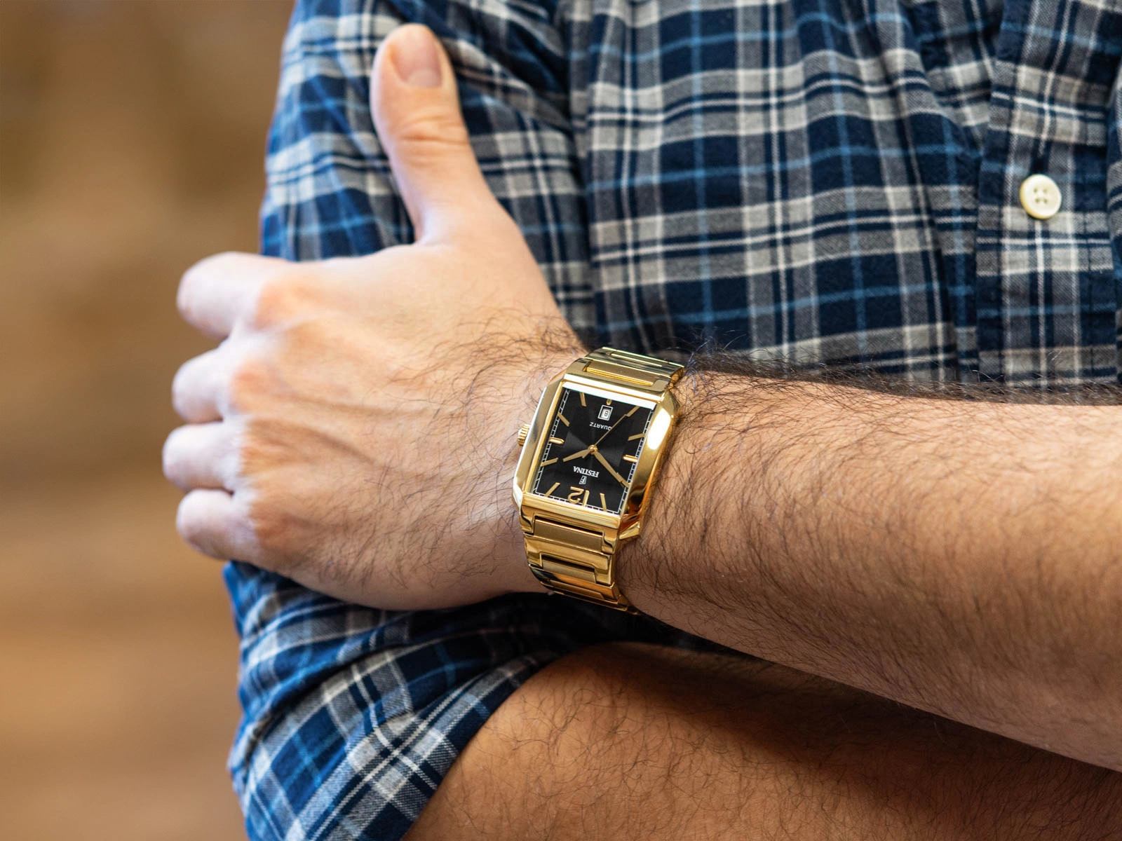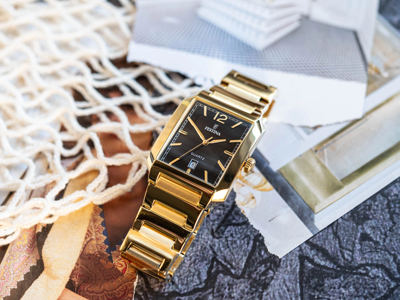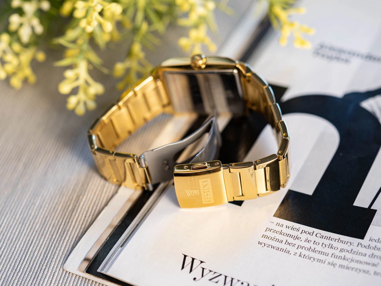 Festina F20678/4 Classic to zegarek, który udowadnia, że klasyka nigdy nie wychodzi z mody. Złoty kolor nadaje mu wyjątkowego charakteru, wygląda stylowo, elegancko i po prostu fajnie. Prostokątna koperta w ciepłym, złotym odcieniu została wykonana z wysokiej jakości stali nierdzewnej, dzięki czemu zegarek jest nie tylko efektowny, ale też solidny i trwały. Dopasowana bransoleta o subtelnym połysku tworzy spójną, klasyczną całość, która świetnie prezentuje się na każdym nadgarstku.