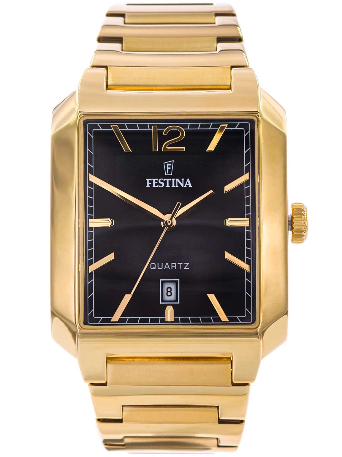 Wewnątrz pracuje precyzyjny mechanizm kwarcowy, gwarantujący niezawodność na co dzień. Czarna tarcza z pionowymi indeksami i smukłymi wskazówkami przyciąga uwagę swoją elegancją, a praktyczny datownik umieszczony przy godzinie szóstej dodaje jej funkcjonalności. Model z serii Festina Classic to idealny wybór dla mężczyzn, którzy lubią rzeczy z klasą, ale nie chcą rezygnować z nowoczesnego stylu. Świetnie pasuje do garnituru, casualowej koszuli czy stylizacji do pracy. Wygodne zapięcie motylkowe zapewnia komfort noszenia, a eleganckie pudełko Festina sprawia, że ten złoty zegarek to także doskonały pomysł na prezent dla mężczyzny, który ceni dobry design i jakość.