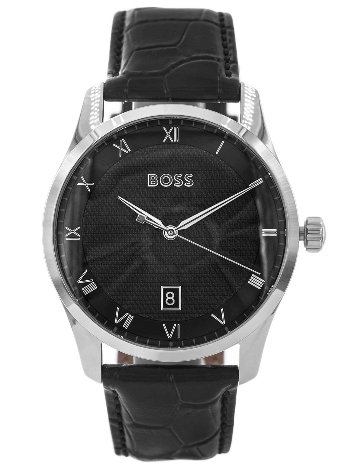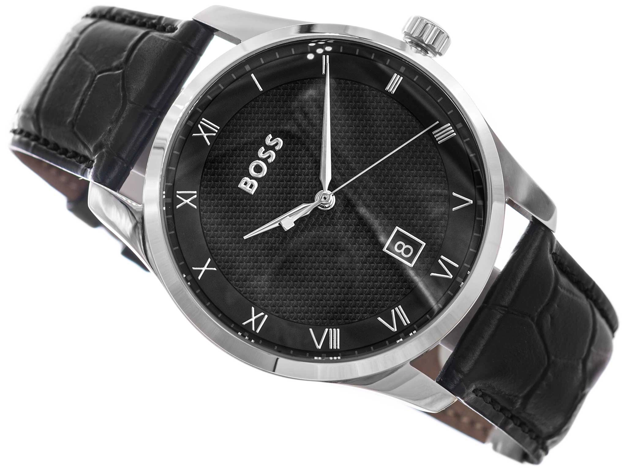 - Zegarek Męski Hugo Boss 1570190 czarny na pasku, posiada funkcję datownika. W zestawie etui na karty kredytowe.