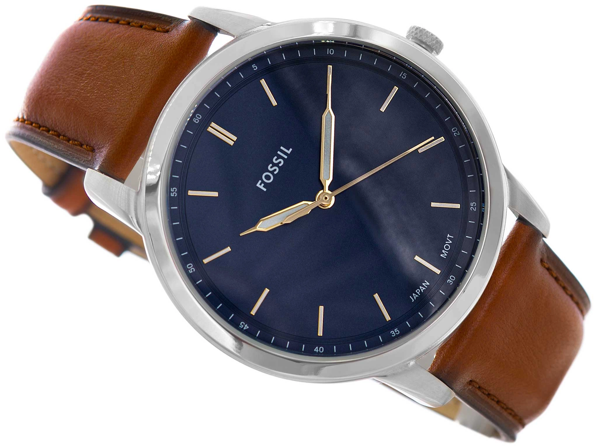 Fossil FS5304 Minimalist ukazuje sposób, w jaki klasyka potrafi zyskać współczesną lekkość bez utraty elegancji. Wykonana ze stali szlachetnej srebrna koperta o smukłej linii otacza granatową tarczę, której głębia podkreśla harmonijny układ indeksów. Złoto-białe wskazówki i indeksy wyposażono w elementy z fosforyzującą powłoka neobrite, która po wcześniejszym naświetleniu będzie świecić przez jakiś czas, ułatwiając odczytanie wskazań zegarka w złych warunkach oświetleniowych. Charakter zegarka dopełnia brązowy pasek z naturalnej skóry, miękki w dotyku i z czasem zyskujący indywidualną patynę, zapinany na klasyczną sprzączkę. Wnętrze skrywa japoński mechanizm kwarcowy, znany z bezkompromisowej punktualności i niezawodności, zasilany wymienną baterią. Tarczę zabezpiecza płaskie, mineralne szkło. Minimalistyczna forma sprawia, że czasomierz zyskuje uniwersalny charakter, pozostając jednocześnie wyrazem elegancji typowej dla projektów Fossil. Zegarek został spakowany w oryginale pudełko producenta, które doskonale sprawdzi się w charakterze opakowania na prezent.