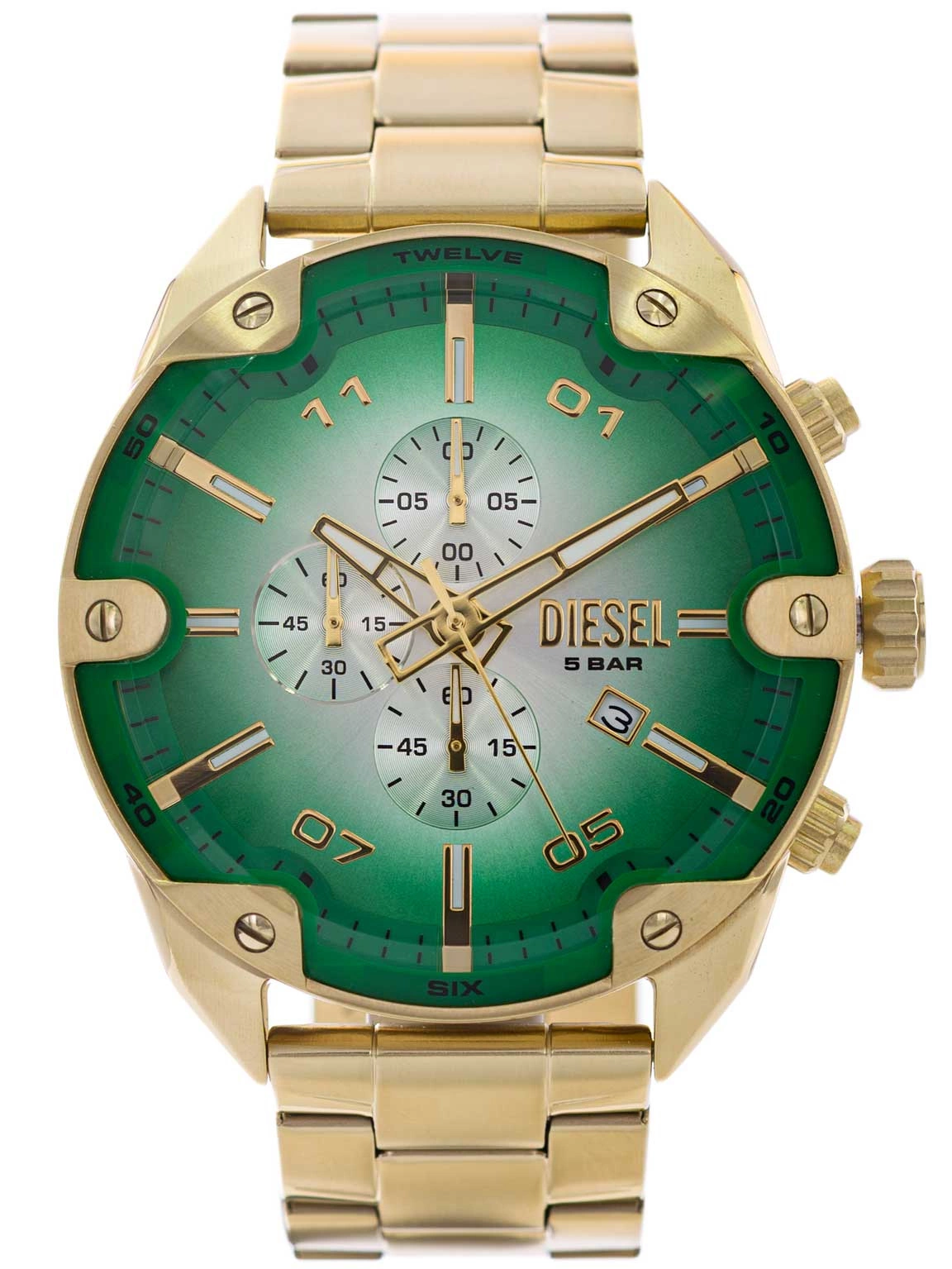 • Zegarek Męski Diesel DZ4685 złoty na bransolecie, posiada takie funkcje jak stoper, datownik, neobrite.