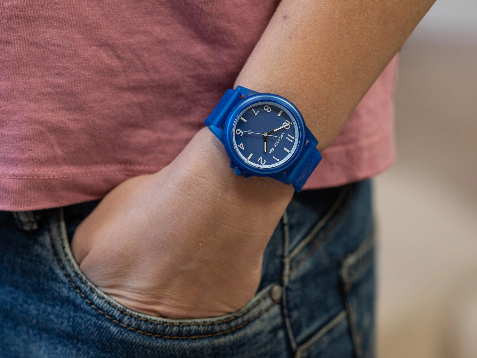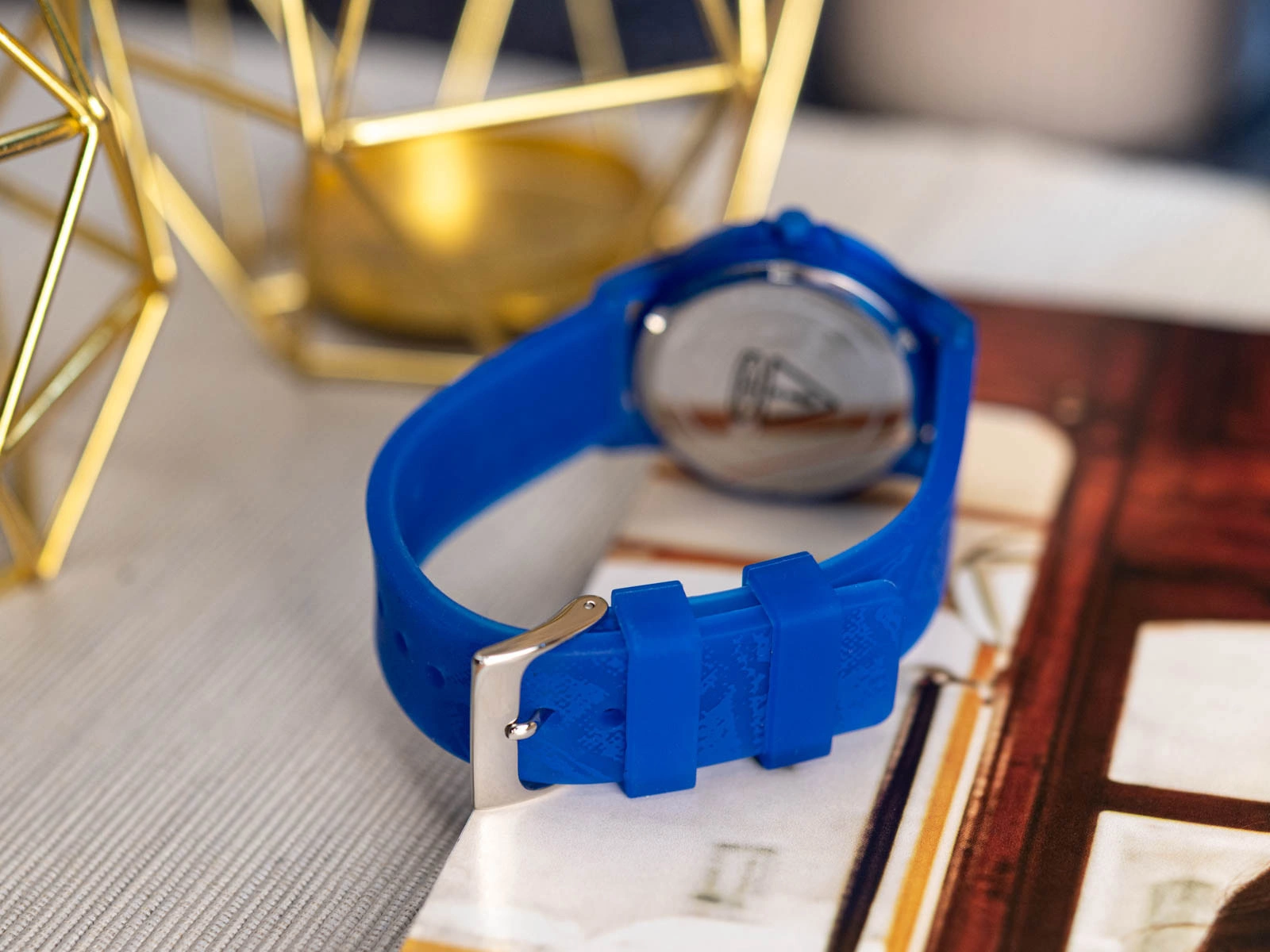 Lacoste 2020159 Raider powstał z myślą o najmłodszych użytkownikach, dla których wygoda, lekkość i przejrzystość odczytu są równie ważne, co radosna estetyka. Jego półprzezroczysta, niebieska koperta z tworzywa sztucznego tworzy harmonijną całość z tarczą utrzymaną w tej samej kolorystyce, nadając zegarkowi świeży, młodzieńczy charakter. Na tle intensywnego błękitu wyraźnie odcinają się białe cyfry i wskazówki, co ułatwia szybkie rozpoznanie godziny, szczególnie dzieciom uczącym się dopiero pierwszych zasad odmierzania czasu. Na tarczy pojawia się również charakterystyczne logo krokodyla, subtelnie podkreślające sportowy styl projektu. Całość została zawieszona na elastycznym pasku z trwałego tworzywa sztucznego, ozdobionym sylwetkami krokodyli znanych z logo marki. Pasek zapinany jest na klasyczną sprzączkę, dzięki czemu zegarek dobrze układa się na drobnej, dziecięcej dłoni i pozostaje stabilny nawet podczas zabawy. Stalowy, zakręcany dekiel wzmacnia konstrukcję, chroniąc wnętrze, w którym pracuje niezawodny mechanizm kwarcowy odpowiadający za precyzyjne odmierzanie czasu. Mineralne szkło zabezpiecza tarczę przed codziennymi zarysowaniami, sprawiając, że zegarek zachowuje swój świeży wygląd na dłużej. Lacoste 2020159 Raider to lekki i komfortowy model, zaprojektowany tak, by towarzyszył młodym użytkownikom w ich codziennych aktywnościach. W zestawie znajduje się dedykowane pudełko producenta, idealne zarówno do przechowywania, jak i wręczenia w formie prezentu.