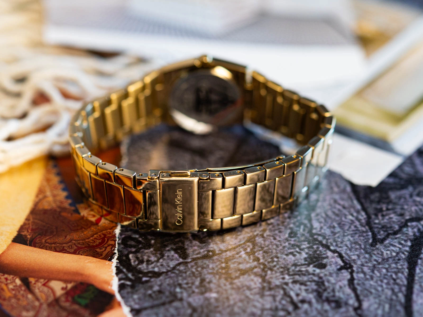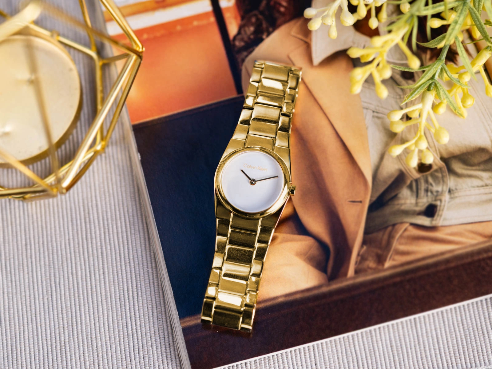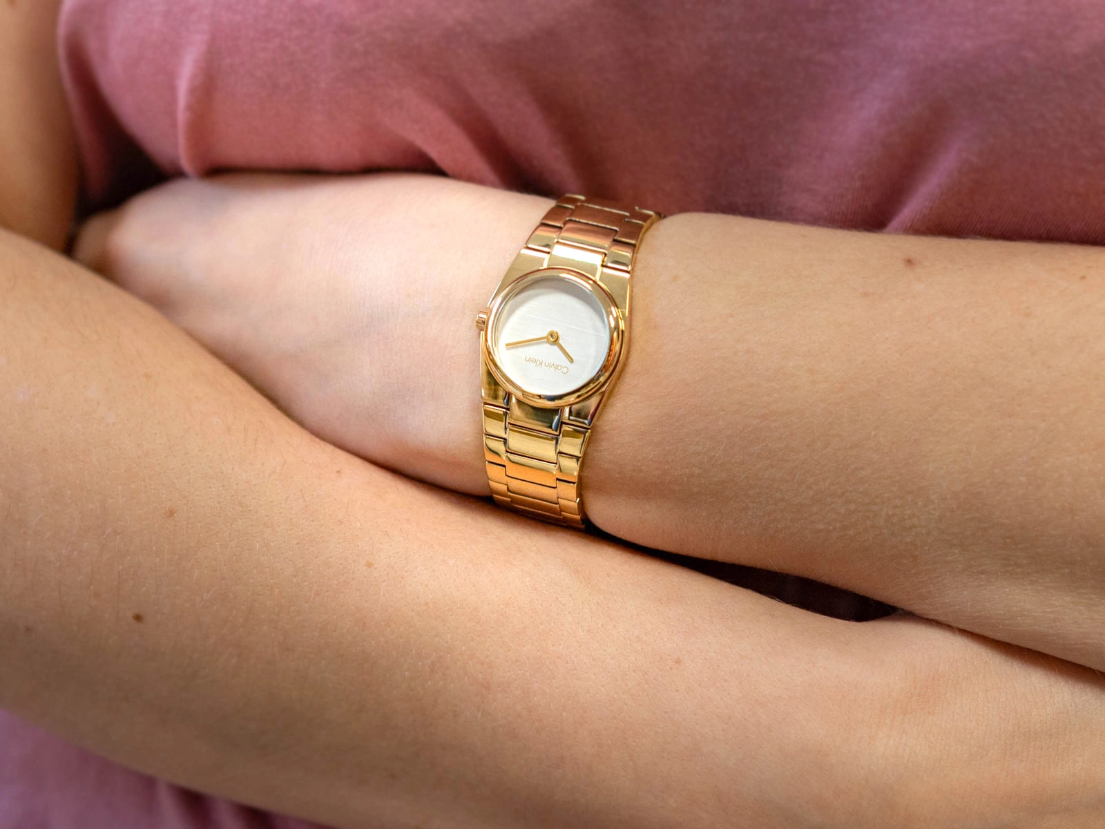 - Zegarek Damski Calvin Klein 25100122 złoty na bransolecie.