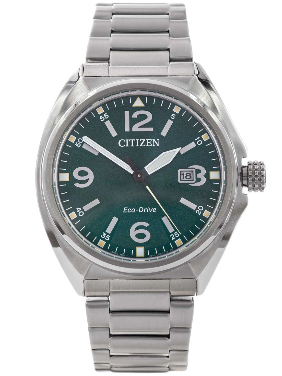 Citizen AW1571-76X Military to model, który w wyjątkowy sposób łączy klasyczną elegancję z subtelnym sportowym charakterem. Jego wykonana z wysokiej jakości stali szlachetnej koperta oraz bransoleta tworzą harmonijną całość, emanującą solidnością i ponadczasowym stylem. Polerowane i satynowane powierzchnie stali podkreślają szlachetność konstrukcji, a starannie wyprofilowana bransoleta zapewnia wygodę codziennego noszenia, czyniąc zegarek uniwersalnym dodatkiem zarówno do formalnych, jak i casualowych stylizacji. Zielona tarcza jest centralnym elementem kompozycji. Kontrastujące, srebrne indeksy i wskazówki nadają jej wyrazistości i gwarantują doskonałą czytelność w każdych warunkach. Zintegrowany datownik, subtelnie wkomponowany na godzinie trzeciej, podkreśla praktyczny charakter zegarka, nie zaburzając równowagi jego eleganckiego układu. Minimalistyczny design tarczy sprawia, że model Citizen AW1571-76X Military wpisuje się w estetykę klasycznych zegarków męskich, które nigdy nie wychodzą z mody. Sercem czasomierza jest mechanizm solarny cal. J810 zasialny przez system  Eco-Drive, będący jedną z najbardziej innowacyjnych technologii marki Citizen. Dzięki wykorzystaniu energii świetlnej – zarówno naturalnej, jak i sztucznej – zegarek działa nieprzerwanie, eliminując konieczność wymiany baterii i oferując długą rezerwę chodu. Precyzja mechanizmu idzie w parze z jego niezawodnością, co czyni model nie tylko eleganckim dodatkiem, ale także praktycznym towarzyszem codziennego życia. Citizen AW1571-76X Eco-Drive Elegance to propozycja dla mężczyzn, którzy poszukują zegarka o ponadczasowej estetyce, solidnym wykonaniu i nowoczesnej technologii. To czasomierz, w którym klasyczna forma spotyka się z praktycznością, tworząc uniwersalne rozwiązanie na każdą okazję – od spotkań biznesowych po codzienne aktywności.