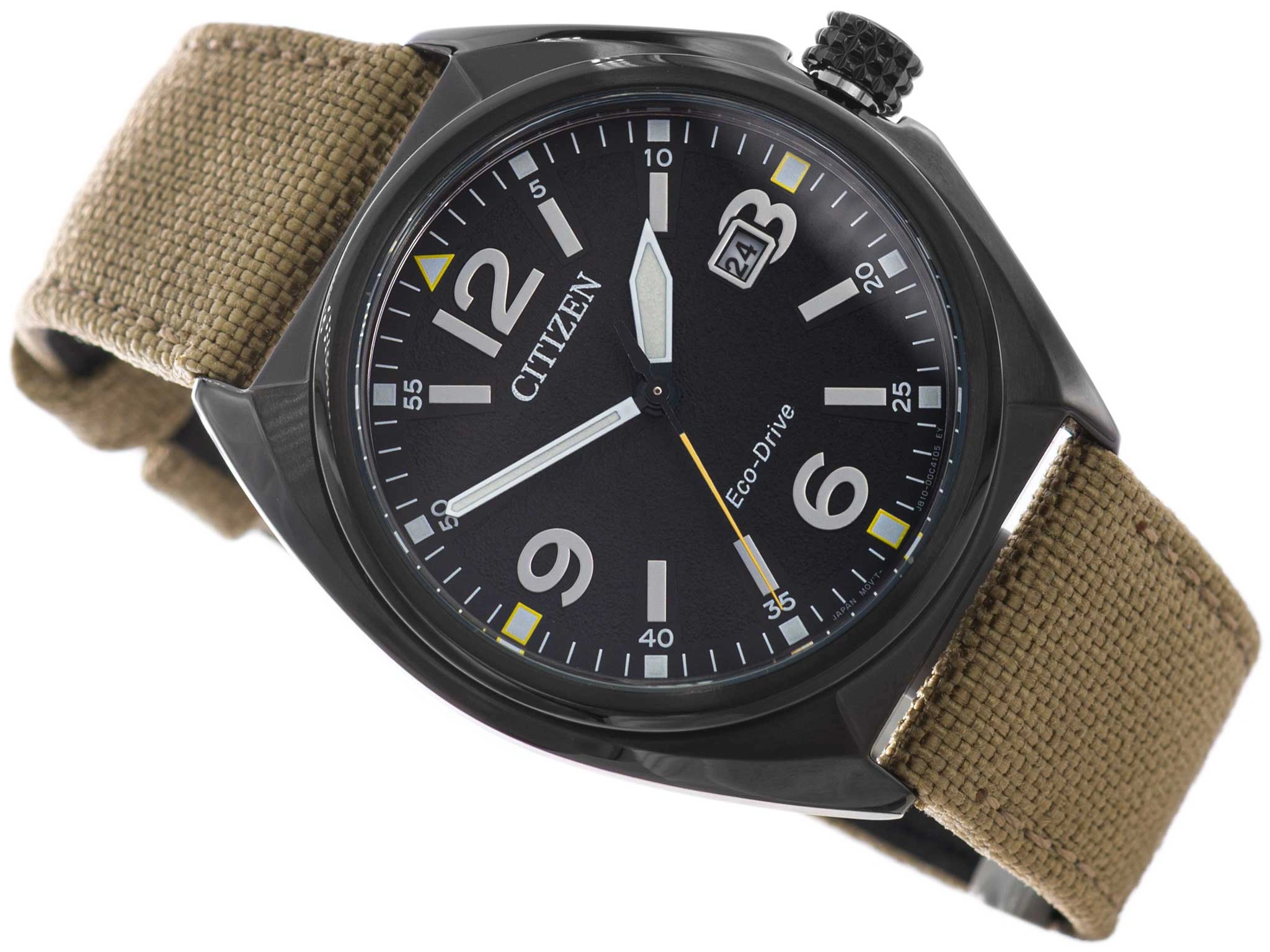 Citizen AW1575-08E Eco-Drive Military to zegarek, który łączy w sobie surową precyzję militarnego wzornictwa z nowoczesną technologią zasilania światłem. Czarna koperta ze stali szlachetnej tworzy solidną, matową oprawę, podkreślającą jego taktyczny, męski charakter. Na jej tle szczególnego wyrazu nabiera czarna tarcza o głębokim, satynowym wykończeniu, na której umieszczono wyraźne indeksy i wskazówki wyposażone w elementy z powłoką neobrite, które po wcześniejszym naświetleniu będą świecić przez jakiś czas ułatwiając odczytanie wskazań zegarka. Datownik zlokalizowany na wysokości godziny trzeciej dodaje kompozycji funkcjonalnego balansu, zachowując pełną czytelność i estetyczną równowagę tarczy. Całość zamknięta została pod szkłem mineralnym, które skutecznie chroni powierzchnię cyferblatu, a zakręcany dekielek zwiększa szczelność konstrukcji, podkreślając jej terenowy charakter. Wodoszczelność na poziomie 10 BAR zapewnia bezpieczeństwo podczas codziennego użytkowania, niezależnie od warunków – czy to podczas aktywności w plenerze, czy w miejskim rytmie dnia. Beżowy pasek wykonany z wytrzymałej taśmy parcianej z miękkim, skórzanym podszyciem łączy trwałość i komfort noszenia. Jego piaskowy odcień wprowadza naturalny, militarny akcent, który doskonale kontrastuje z czernią koperty i tarczy. Sercem modelu AW1575-08E jest japoński mechanizm kwarcowy kaliber J810 z systemem Eco-Drive – technologią, która przekształca światło w energię, zapewniając nieprzerwaną pracę zegarka bez potrzeby wymiany baterii. To rozwiązanie, które idealnie wpisuje się w nowoczesne, ekologiczne podejście do zegarmistrzostwa, łącząc precyzję z odpowiedzialnością i trwałością. Citizen AW1575-08E Eco-Drive Military to esencja męskiego, terenowego stylu w eleganckim wydaniu – zegarek, który zachwyca równowagą pomiędzy techniczną funkcjonalnością a wyważoną estetyką. Stworzony z myślą o codzienności, w której siła, praktyczność i styl tworzą wspólną definicję czasu. Producent dołączył do tego modelu eleganckie opakowanie, które może posłużyć jako pudełko na prezent.