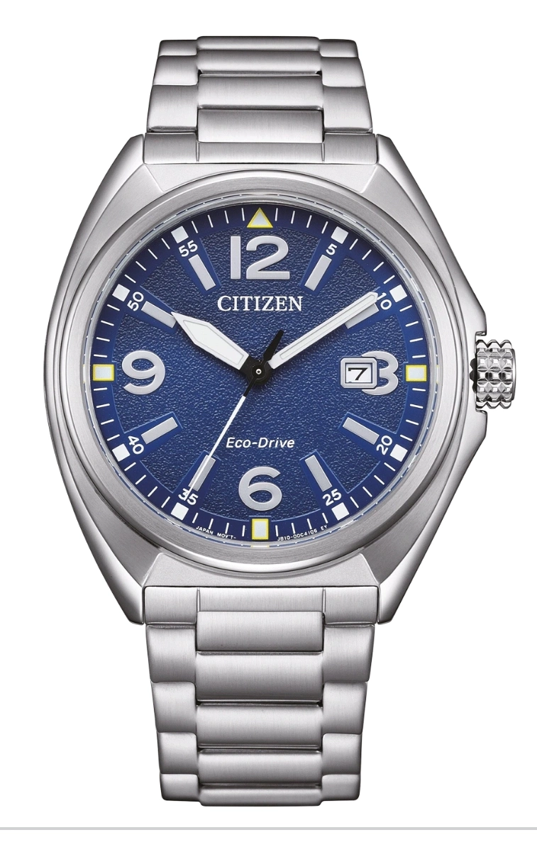Citizen AW1571-76L Military to czasomierz, który w wyjątkowy sposób łączy tradycyjny styl z nowoczesnym, lekko sportowym charakterem. Koperta oraz bransoleta wykonane ze stali szlachetnej tworzą spójną, elegancką konstrukcję, wyróżniającą się trwałością i klasycznym wykończeniem. Połączenie powierzchni polerowanych i szczotkowanych nadaje zegarkowi głębi, a ergonomicznie zaprojektowana bransoleta gwarantuje wysoki komfort noszenia na co dzień. Dzięki temu model doskonale sprawdza się zarówno w zestawach formalnych, jak i bardziej swobodnych. Centralnym punktem projektu jest niebieska tarcza, przyciągająca uwagę swoim wyrafinowanym odcieniem. Jasne wskazówki i indeksy tworzą efektowny kontrast, zapewniając jednocześnie świetną czytelność niezależnie od warunków oświetleniowych. Na godzinie trzeciej umieszczono datownik, który subtelnie podkreśla funkcjonalny charakter modelu, zachowując jednocześnie elegancką symetrię kompozycji.
