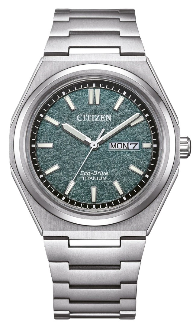 Citizen AW0130-85X Zenshin Super Titanium to zegarek, który łączy w sobie nowoczesną technologię, wyjątkową estetykę i japońską precyzję. Nazwa „Zenshin”, oznaczająca w języku japońskim „postęp”, odzwierciedla koncepcję tego modelu: połączenie tradycyjnego zegarmistrzostwa z innowacyjnymi rozwiązaniami. Koperta i bransoleta wykonane są z tytanu, wzmocnionego autorską technologią Citizen Super Titanium, co czyni zegarek wyjątkowo odpornym na uszkodzenia i działanie czynników atmosferycznych, a przy tym niezwykle lekkim i komfortowym w noszeniu przez cały dzień. Srebrne, polerowane elementy bransolety i subtelny połysk bezela tworzą elegancką, nowoczesną kompozycję, w której każdy detal podkreśla kunszt wykonania. Wyraźna, zielona tarcza przyciąga wzrok swoją fakturą i nowoczesnym charakterem. Liniowe indeksy i masywne wskazówki pokryto powłoką neobrite, zapewniającą doskonałą czytelność po wcześniejszym naświetleniu. Przy godzinie trzeciej umieszczono dyskretny datownik, który harmonijnie wpisuje się w układ cyferblatu, nie zaburzając jego minimalistycznej estetyki. Szafirowe szkło o wysokiej twardości chroni tarczę przed zarysowaniami i zachowuje klarowność odczytu. Mechanizm kwarcowy cal.J800 z systemem Eco-Drive wykorzystuje energię świetlną, eliminując konieczność wymiany baterii i zapewniając niezawodność działania przez lata. Wodoszczelność na poziomie 10 BAR pozwala na kontakt z wodą podczas pływania, a bransoleta zakończona zapięciem motylkowym gwarantuje stabilność i komfort noszenia. Citizen AW0130-85X Zenshin Super Titanium to zegarek, który łączy elegancję i funkcjonalność, stając się zarówno praktycznym narzędziem, jak i wyrafinowanym dodatkiem do codziennych i formalnych stylizacji. Oryginalne opakowanie producenta dopełnia całości, czyniąc ten model idealnym wyborem na prezent – dla miłośników nowoczesnego wzornictwa, technologicznych innowacji i japońskiej precyzji zaklętej w ponadczasowej formie.