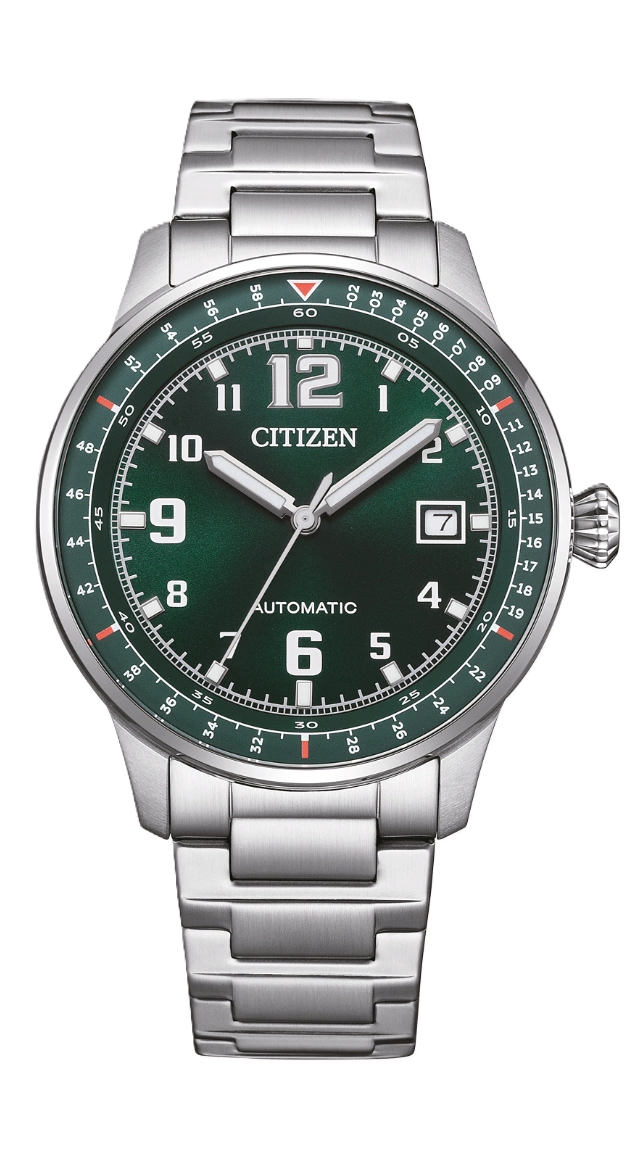 Citizen NJ0190-51X Mechanical Urban Military to propozycja dla osób, które chcą połączyć solidność japońskiej technologii z wyrafinowaną miejską estetyką. Zegarek wyposażono w mechanizm automatyczny, który samodzielnie się nakręca podczas codziennych ruchów ręki, dzięki czemu użytkownik może cieszyć się pełną niezależnością od baterii. To rozwiązanie z pewnością przypadnie do gustu entuzjastom klasycznego zegarmistrzostwa, doceniającym naturalny rytm pracy czasomierza i jego elegancki charakter. Koperta oraz bransoleta zostały wykonane z trwałej stali szlachetnej, znanej z wysokiej odporności na zarysowania i działanie czynników zewnętrznych. Srebrzysty połysk konstrukcji stylowo kontrastuje z zieloną tarczą, tworząc ponadczasowe połączenie, które sprawdzi się zarówno w codziennych zestawach, jak i w bardziej oficjalnych stylizacjach.