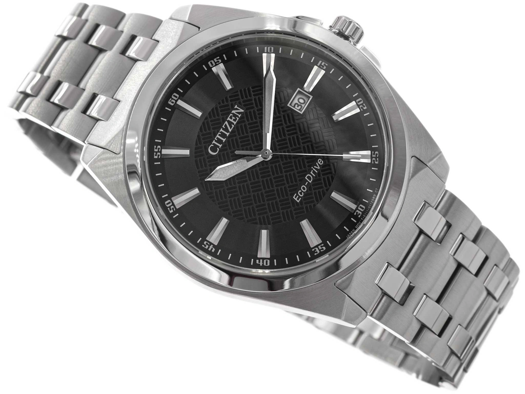 - Solarny Zegarek Męski Citizen BM7108-81E srebrny na bransolecie, posiada funkcję datownika i neobrite.