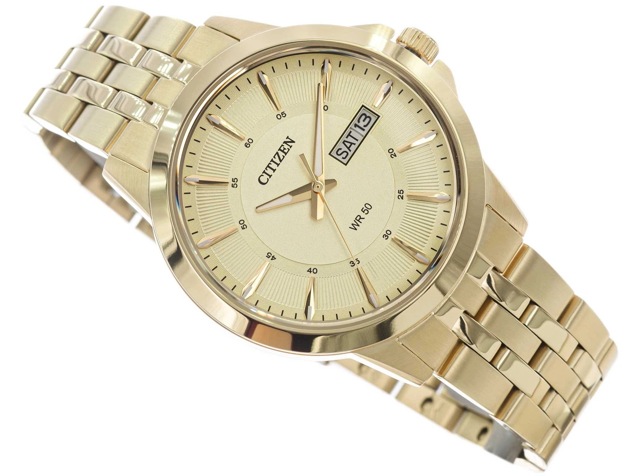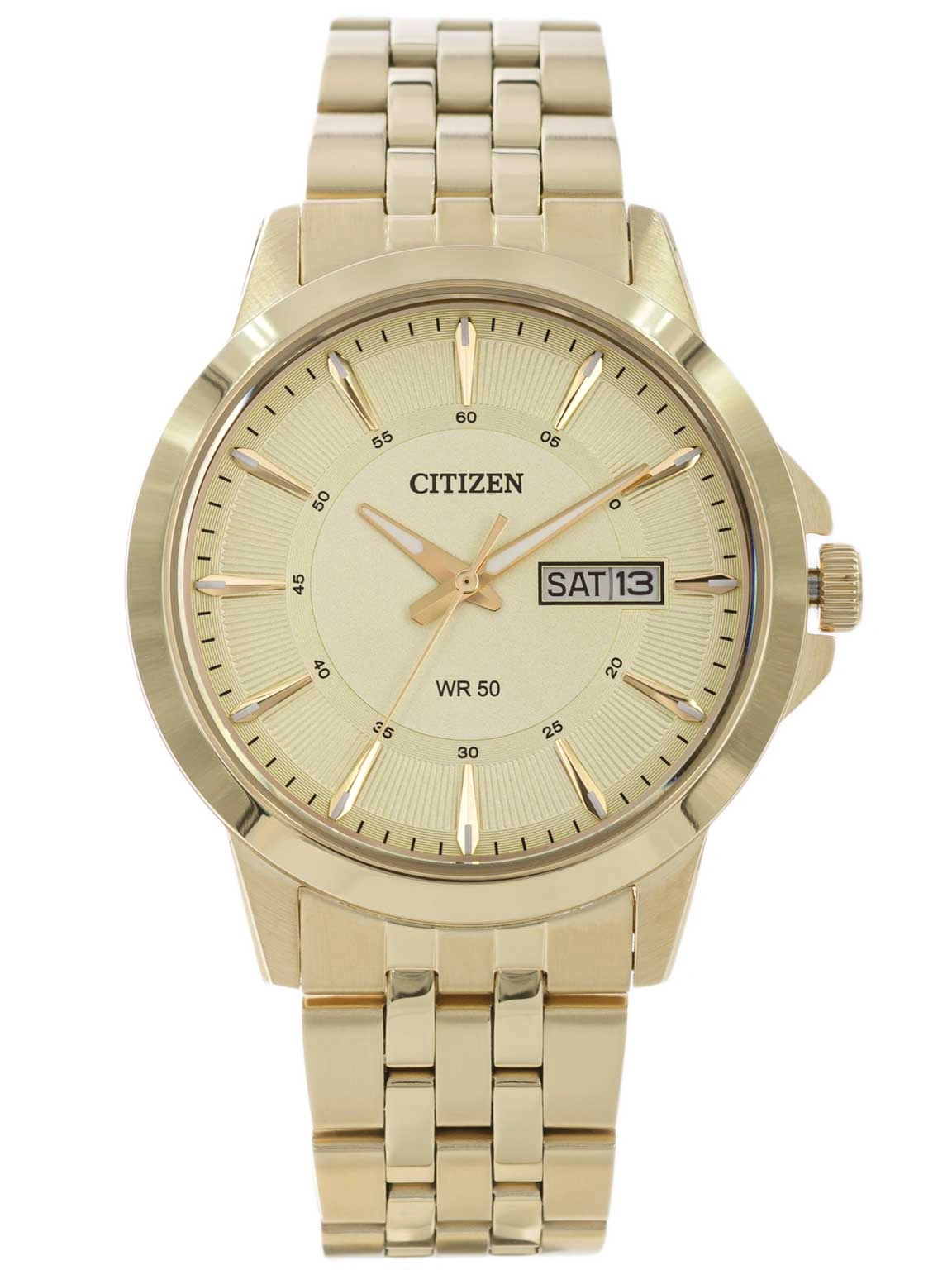 - Zegarek Męski Citizen BF2013-56P złoty na bransolecie, posiada funkcję datownika oraz neobrite.