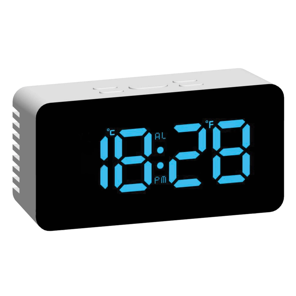 - Budzik JVD SB3658.5 - Biały. Wyposażony w termometr, datownik i alarm.