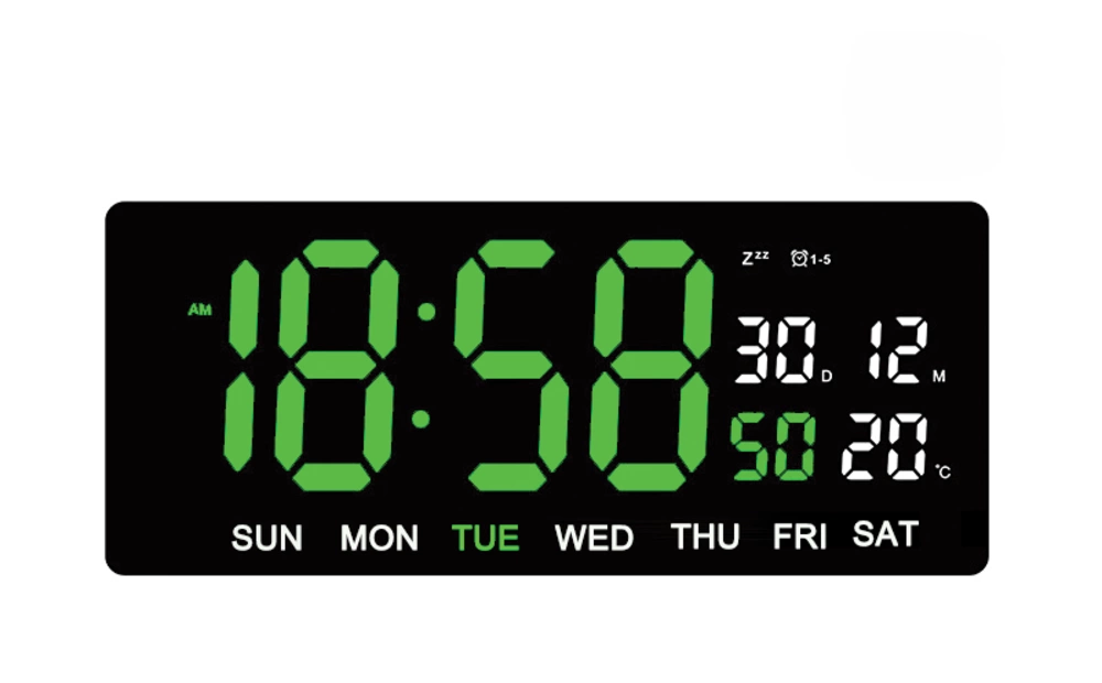 JVD DH3604.2 to sieciowy zegar LED, który łączy nowoczesny design z funkcjonalnością rozbudowanego budzika. Zielone cyfry o wysokości 10 cm tworzą wyraźny, energetyczny kontrast na tle czarnej obudowy, zapewniając doskonałą czytelność z różnych odległości. Obudowa z tworzywa sztucznego pozwala zarówno ustawić zegar na płaskiej powierzchni, jak i powiesić go na ścianie, dzięki czemu urządzenie sprawdzi się w biurze, pokoju dziennym czy gabinecie. Zegar wyświetla godzinę w formacie 12- lub 24-godzinnym, a automatyczny kalendarz pokazuje skrócone nazwy dni tygodnia w języku angielskim. Dwa niezależne alarmy z regulowaną drzemką mogą działać w wybranych dniach tygodnia, dostosowując się do codziennego rytmu użytkownika. Wbudowany termometr mierzy temperaturę otoczenia, a zasilanie sieciowe z baterią podtrzymującą pamięć zapewnia niezawodność działania w każdych warunkach. Model DH3604.2 łączy wyrazistą stylistykę z praktycznym zastosowaniem, stanowiąc atrakcyjny i funkcjonalny dodatek do współczesnych wnętrz.