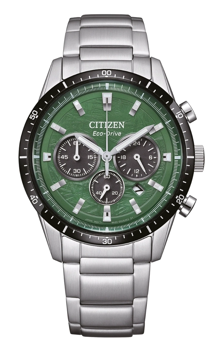 Citizen CA4624-56X Eco-Drive Modern Chrono to propozycja dla osób, które oczekują od zegarka świeżego wzornictwa, wysokiej funkcjonalności i nieprzeciętnej estetyki. Model od pierwszych chwil zwraca uwagę nowoczesną linią oraz solidnym wykonaniem, a jego masywna, srebrna koperta ze stali szlachetnej podkreśla dynamiczny, męski charakter projektu. Dopełnia ją stalowa bransoleta o eleganckim wykończeniu, wyposażona w wygodne zapięcie motylkowe, które gwarantuje zarówno komfort, jak i bezpieczeństwo noszenia. Centralnym punktem konstrukcji jest niezwykle efektowna, zielona tarcza, która przyciąga wzrok głębią koloru i subtelnymi refleksami zmieniającymi się w zależności od światła. Jej powierzchnia została zaprojektowana z dbałością o wizualną harmonię, wszystkie elementy kompozycji rozmieszczono tak, aby tarcza była nie tylko dekoracyjna, ale również czytelna. Srebrno-białe wskazówki oraz indeksy pokryto powłoką Neobrite, dzięki czemu zachowują widoczność w warunkach pogorszonego oświetlenia.