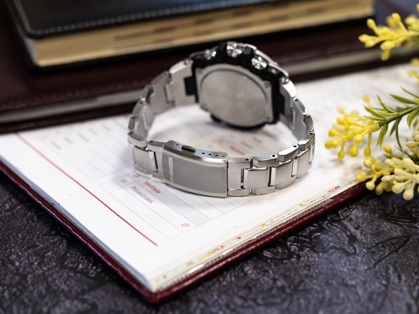 Casio G-SHOCK G-Steel GST-B100D-1AER to zegarek, który w mistrzowski sposób łączy technologiczną precyzję z wyrafinowaną, stalową estetyką. Ten męski czasomierz z serii G-Steel został zaprojektowany, aby sprostać wymaganiom zarówno aktywnego, dynamicznego trybu życia, jak i eleganckich, codziennych stylizacji. Jego koperta wykonana z połączenia stali szlachetnej i tworzywa sztucznego, wzmocniona warstwową konstrukcją Layer Guard, zapewnia niezwykłą odporność na wstrząsy, chroniąc mechanizm i gwarantując niezawodność w każdych warunkach. Bezel, perfekcyjnie dopasowany do koperty, nadaje zegarkowi wyrazistego, nowoczesnego charakteru, a wykonana ze stali szlachetnej bransoleta z pełnymi ogniwami dopełnia jego elegancję, jednocześnie gwarantując komfort i pewność noszenia dzięki solidnemu, bezpiecznemu zapięciu motylkowemu.