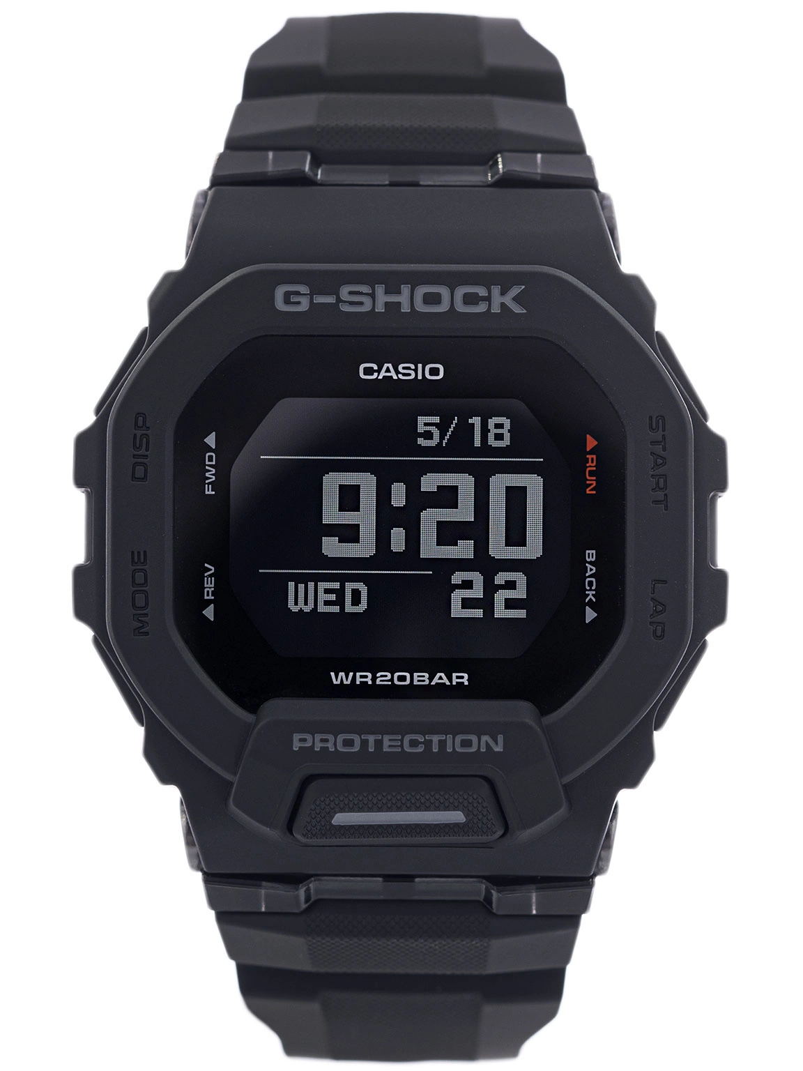 - Wodoszczelny Zegarek Męski Casio G-SHOCK GBD-200 1 czarny na pasku, posiada funkcje takie jak bluetooth - umożliwiający połączenie z telefonem, krokomierz, stoper i datownik.