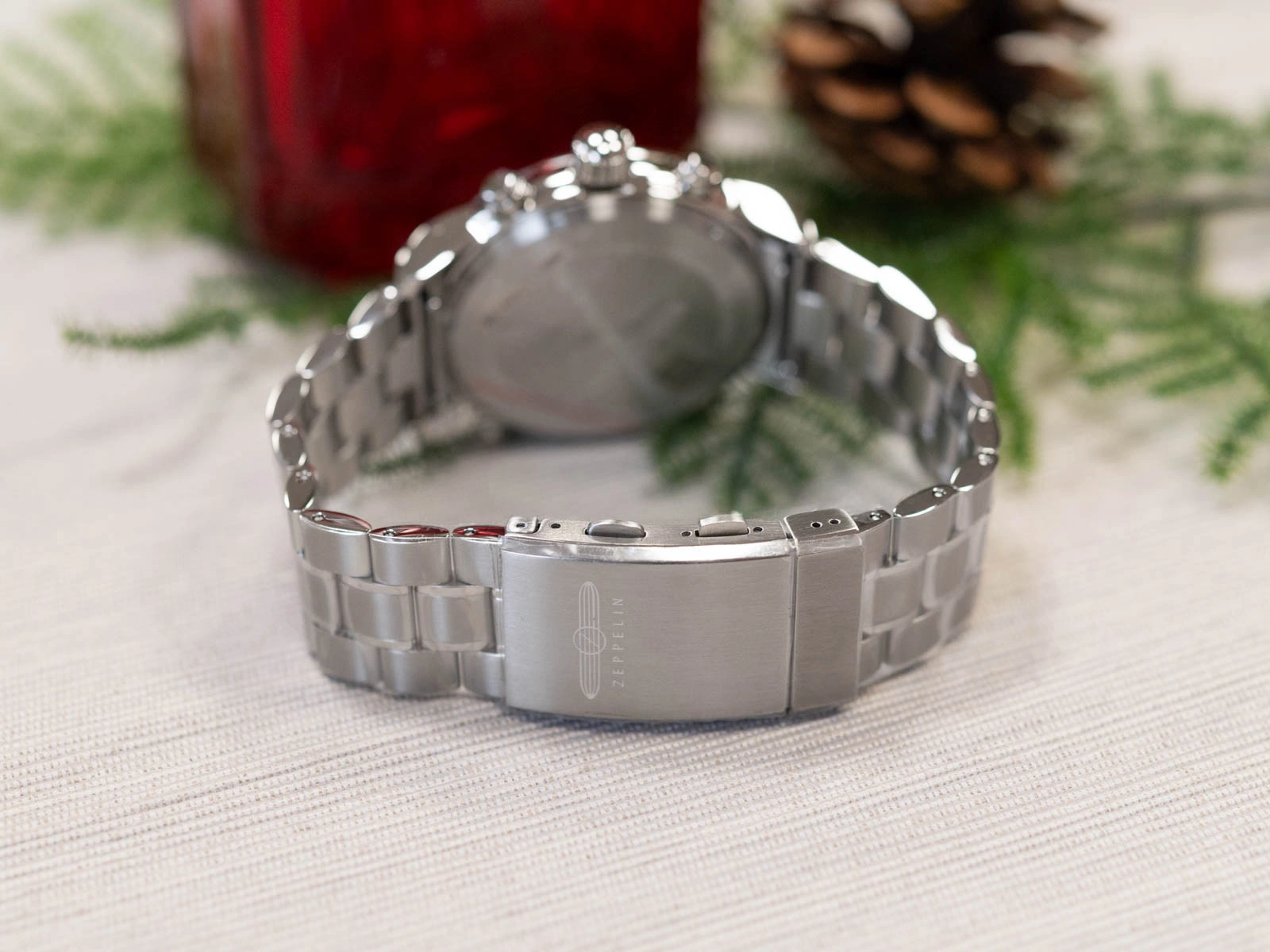 Model wyróżnia się masywną, srebrną kopertą, która efektownie układa się na nadgarstku i podkreśla elegancki charakter zegarka. Stalowa bransoleta wyposażona jest w zapięcie motylkowe oraz możliwość wygodnego poszerzenia jej poprzez naciśnięcie przycisków w klamrze, rozwiązanie to zwiększa komfort noszenia i ułatwia dopasowanie. Wysoka jakość komponentów oraz dbałość o detale sprawiają, że ZEPPELIN 7680MB-1 zasługuje na miano zegarka premium. Całość zapakowana jest w oryginalne pudełko producenta, dzięki czemu model ten idealnie sprawdzi się jako elegancki i wyjątkowy prezent.