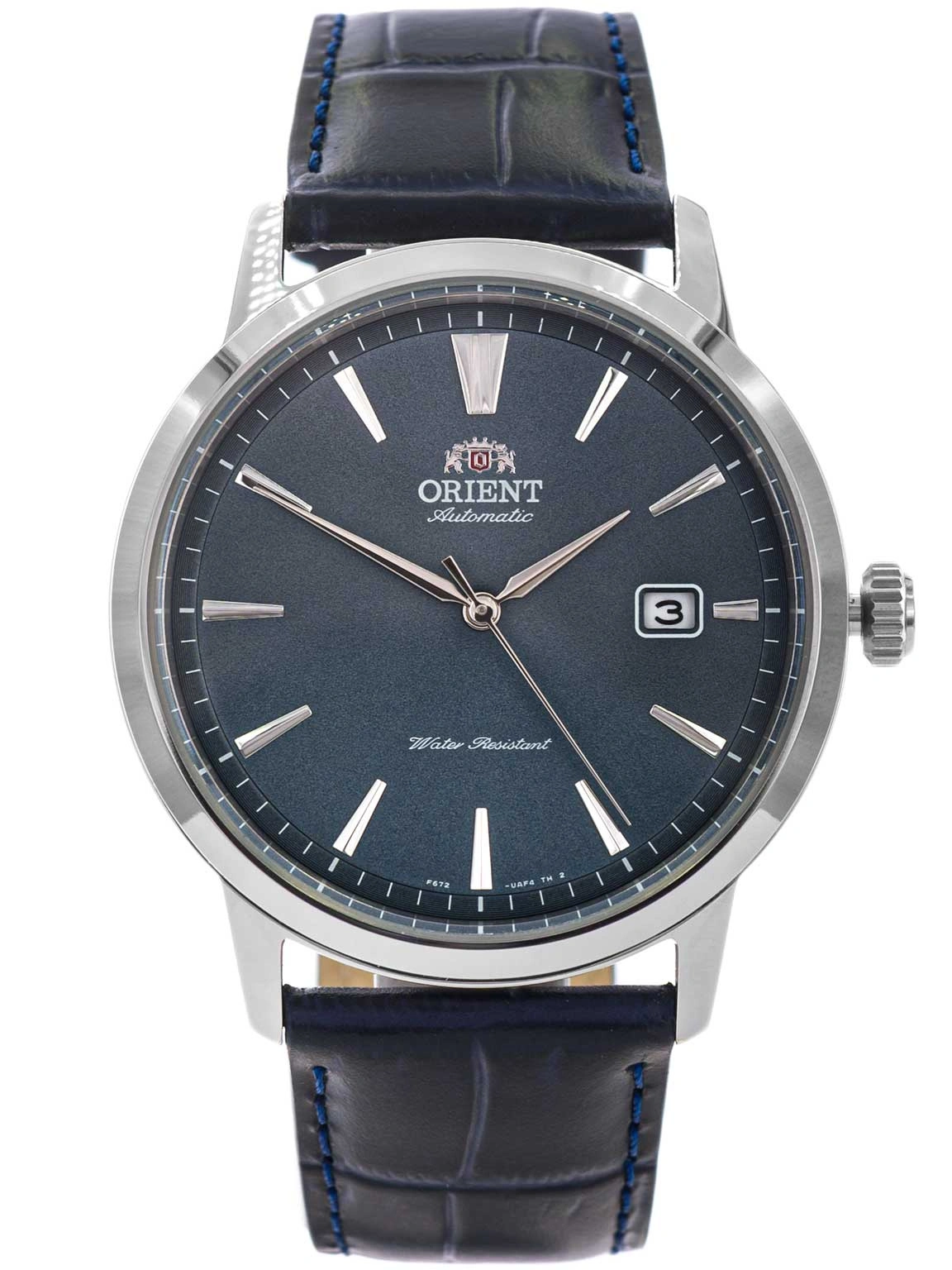 - Automatyczny Zegarek Męski Orient RA-AC0F14L30B granatowy na pasku, posiada funkcję datownika oraz neobrite.