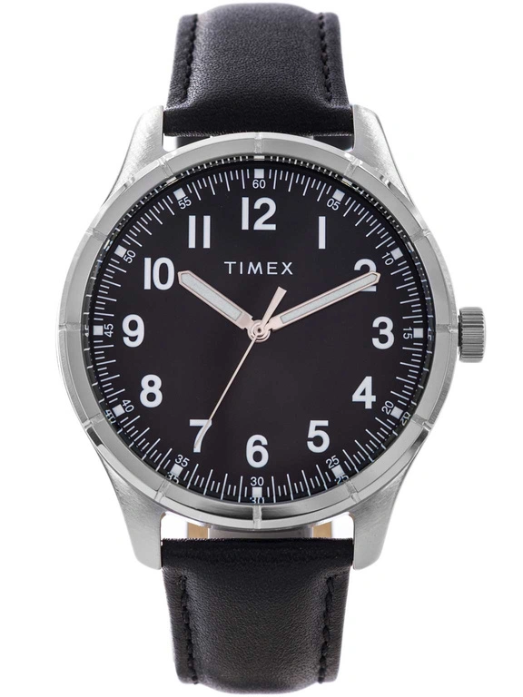 Zegarek męski Timex TW2Y16100 Main Street to doskonały wybór dla tych, którzy zwracają uwagę na ponadczasowy wygląd i komfort noszenia. Model wyróżnia się minimalistyczną stylistyką, która sprawia, że jest to dodatek odpowiedni zarówno do pracy, jak i na co dzień. Subtelna elegancja pozwala mu wpasować się w niemal każdą stylizację, od casualowych zestawów po bardziej formalne połączenia. Stalowa, srebrzysta koperta ma klasyczną linię i idealnie współgra z czarnym skórzanym paskiem. Pasek jest miękki i dobrze dopasowuje się do kształtu nadgarstka, dzięki czemu noszenie zegarka jest wygodne przez cały dzień. Głęboka, czarna tarcza przyciąga wzrok, a jednocześnie pozostaje bardzo czytelna, duże cyfry arabskie i wyraziste wskazówki gwarantują szybki odczyt czasu z każdej perspektywy.