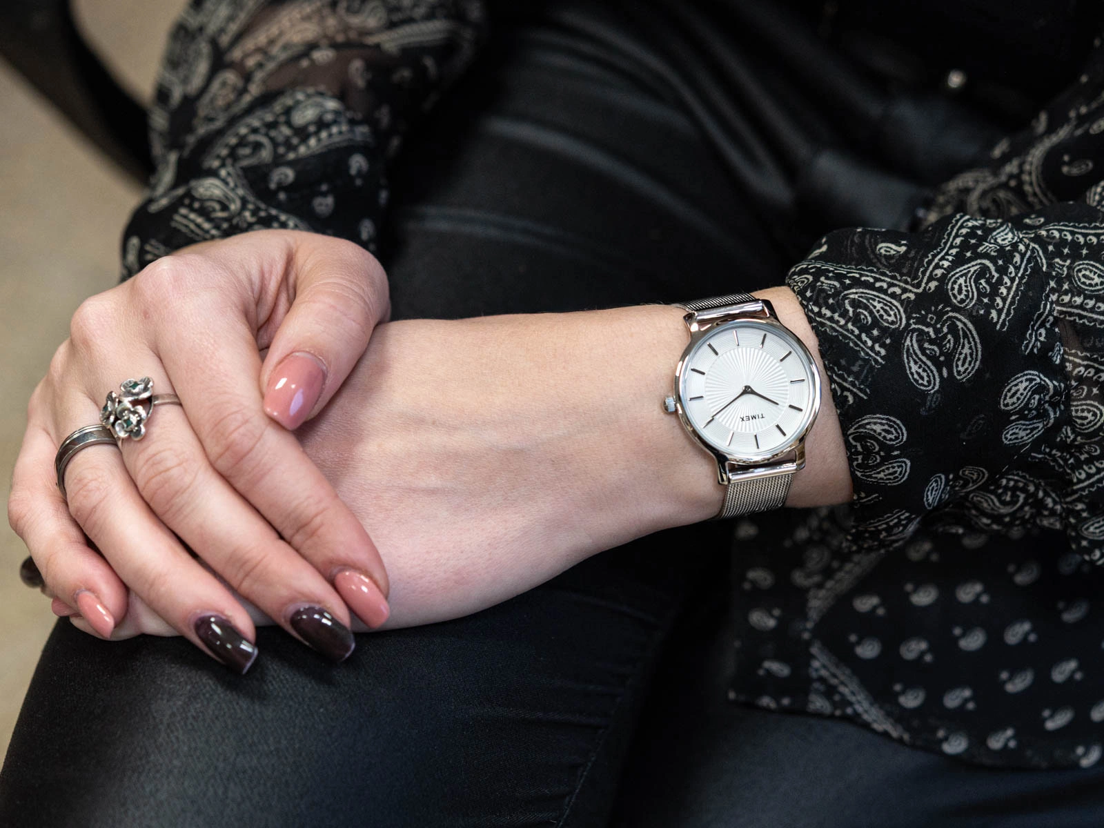 Timex Transcend TW2Y10200 to propozycja dla osób, które poszukują zegarka łączącego prostotę z wyrafinowanym stylem. Jego smukła sylwetka i dopracowane proporcje sprawiają, że doskonale prezentuje się na nadgarstku, nadając mu lekkości i elegancji. Gładka koperta subtelnie odbija światło, tworząc efekt delikatnego połysku, który podkreśla nowoczesny charakter czasomierza. Zegarek osadzono na srebrnej bransolecie typu mesh wykonanej ze stali szlachetnej. Jej drobny splot nie tylko zapewnia komfort noszenia, ale również dodaje całości biżuteryjnego uroku i stylowej lekkości. To detal, który sprawia, że model świetnie komponuje się zarówno z formalnymi stylizacjami, jak i codziennym ubiorem. Centralnym elementem jest biała tarcza o eleganckim, symetrycznym wykończeniu. Minimalistyczne indeksy w formie cienkich linii oraz smukłe wskazówki tworzą harmonijną i czytelną kompozycję, pozwalając na szybki i wygodny odczyt godziny. Tarcza została zabezpieczona szkłem mineralnym, które chroni ją przed drobnymi uszkodzeniami i zarysowaniami.