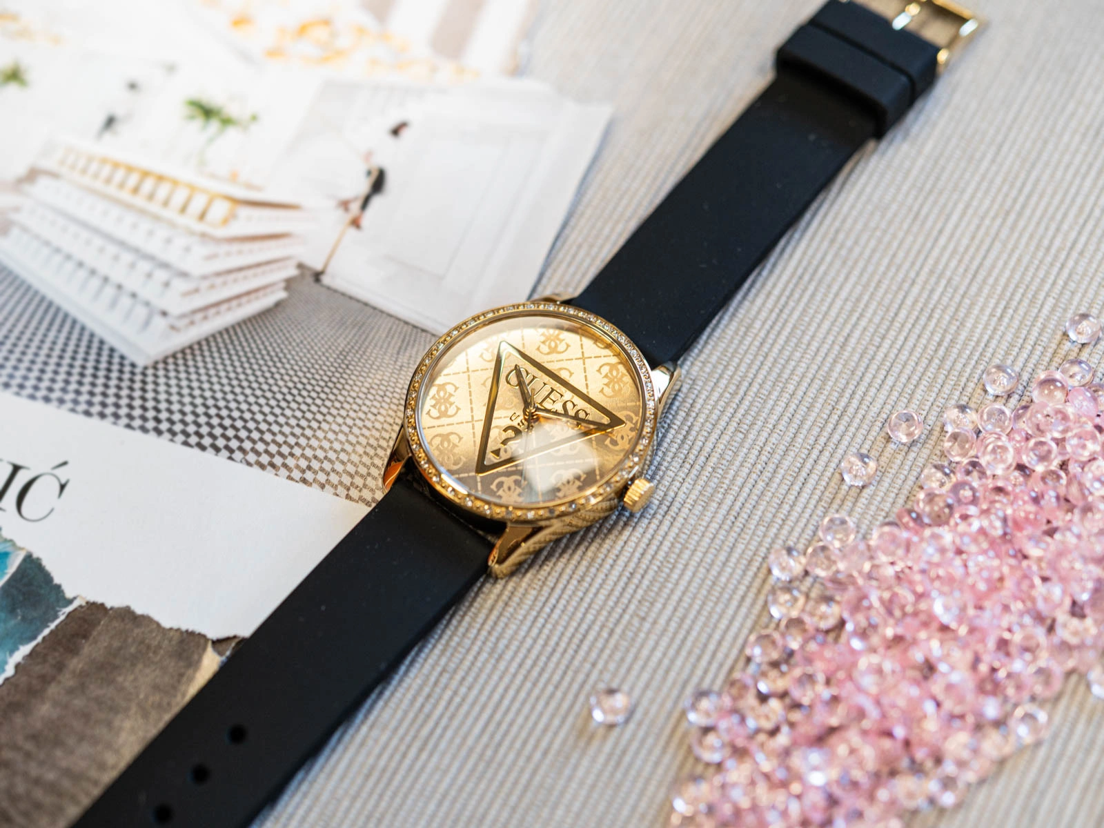 • Zegarek Damski Guess GW0942L2 czarny na pasku.
