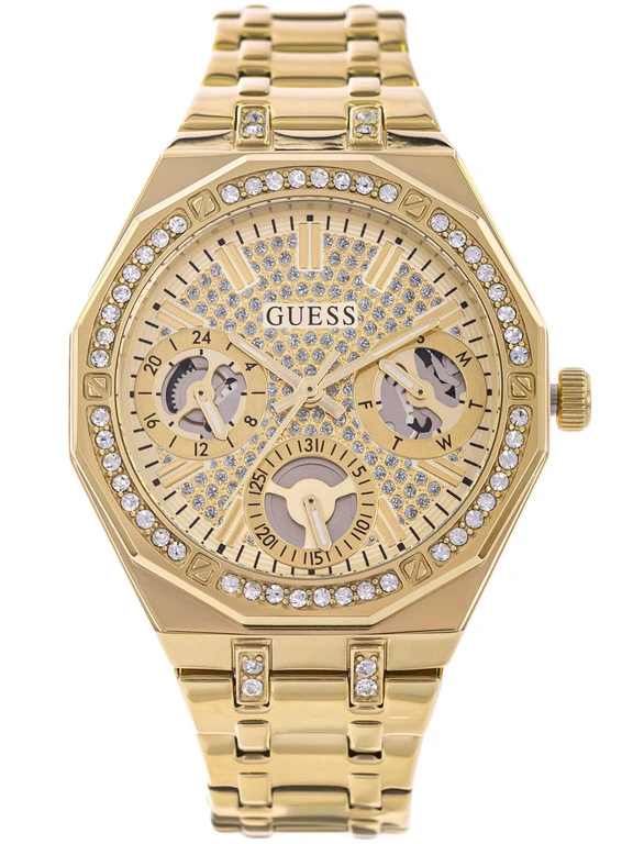 - Zegarek Damski Guess GW0988L2 złoty na bransolecie posiada funkcję datownika oraz neobrite.