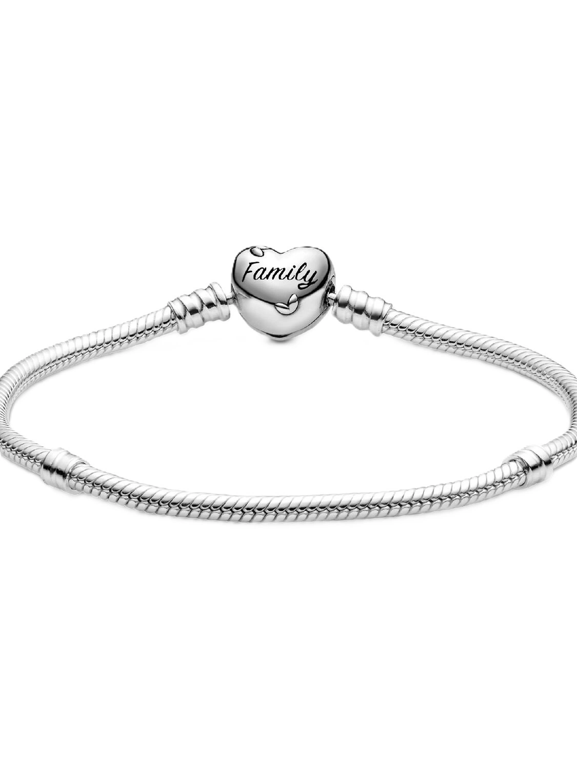 - Bransoletka damska o splocie wężykowym z zapięciem w kształcie serca z drzewem rodzinnym Pandora 598827C01-23 srebrna