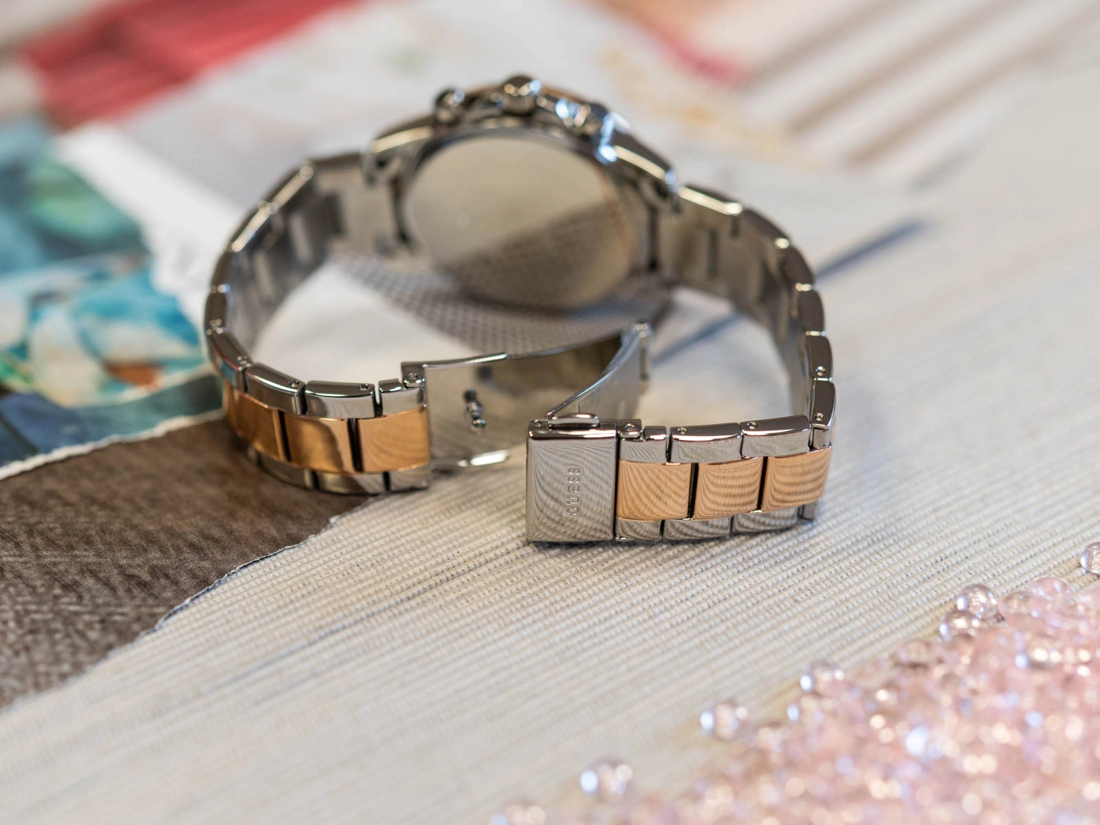 Koperta wykonana ze stali nierdzewnej idealnie współgra z bransoletą w odcieniach różowego złota i srebra, tworząc spójną, luksusową całość. Bransoleta z solidnym zapięciem zapewnia komfort noszenia oraz stabilne dopasowanie do nadgarstka. Guess GW0933L5 Bailey to propozycja dla kobiet, które chcą podkreślić swoją osobowość modnym, biżuteryjnym zegarkiem o praktycznych funkcjach. Stylowe opakowanie producenta sprawia, że model doskonale sprawdzi się również jako elegancki prezent dla bliskiej osoby.