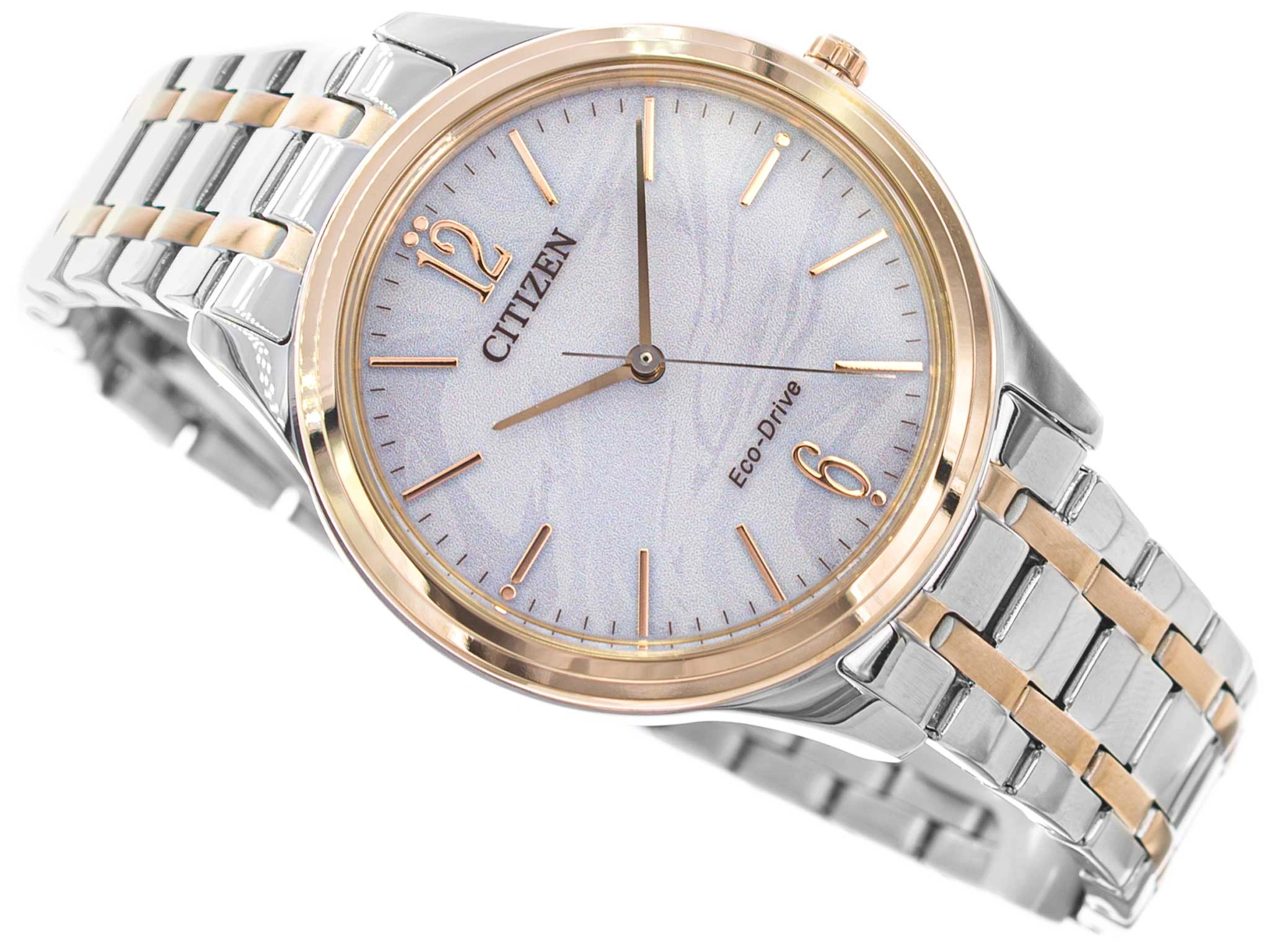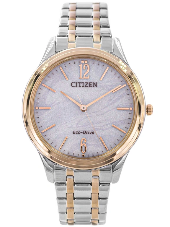 Citizen EM0416-78A Elegance Casual to zegarek stworzony z myślą o kobietach, które cenią wyrafinowany styl w nowoczesnym wydaniu. Subtelna forma, harmonijne proporcje i starannie dobrane detale sprawiają, że model ten łączy funkcję precyzyjnego czasomierza z rolą eleganckiej biżuterii. To propozycja dla osób poszukujących dodatku, który podkreśli klasę i naturalną kobiecość bez zbędnego przepychu. Koperta oraz bransoleta wykonane zostały z trwałej stali szlachetnej, wykończonej w dwukolorowej tonacji srebra i złota. Takie zestawienie nadaje zegarkowi uniwersalny charakter i sprawia, że doskonale komponuje się zarówno z codziennymi, jak i bardziej formalnymi stylizacjami. Jasna tarcza przyciąga uwagę delikatnym wzorem, który uwydatnia się się wraz z ruchem dłoni, nadając całości lekkości i świeżości.