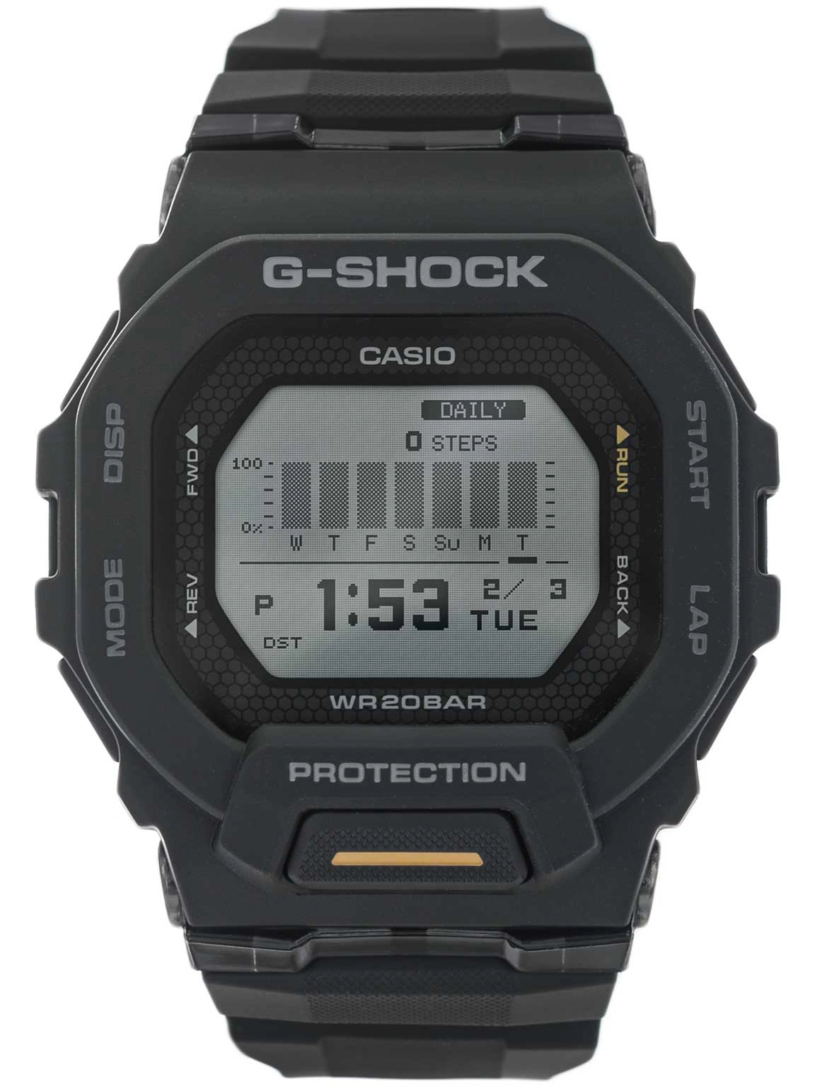 - Wodoszczelny Zegarek Męski Casio G-SHOCK CASIO GBD 200 1A1ER czarny na pasku, posiada funkcje takie jak bluetooth - umożliwiający połączenie z telefonem, krokomierz, stoper i datownik.