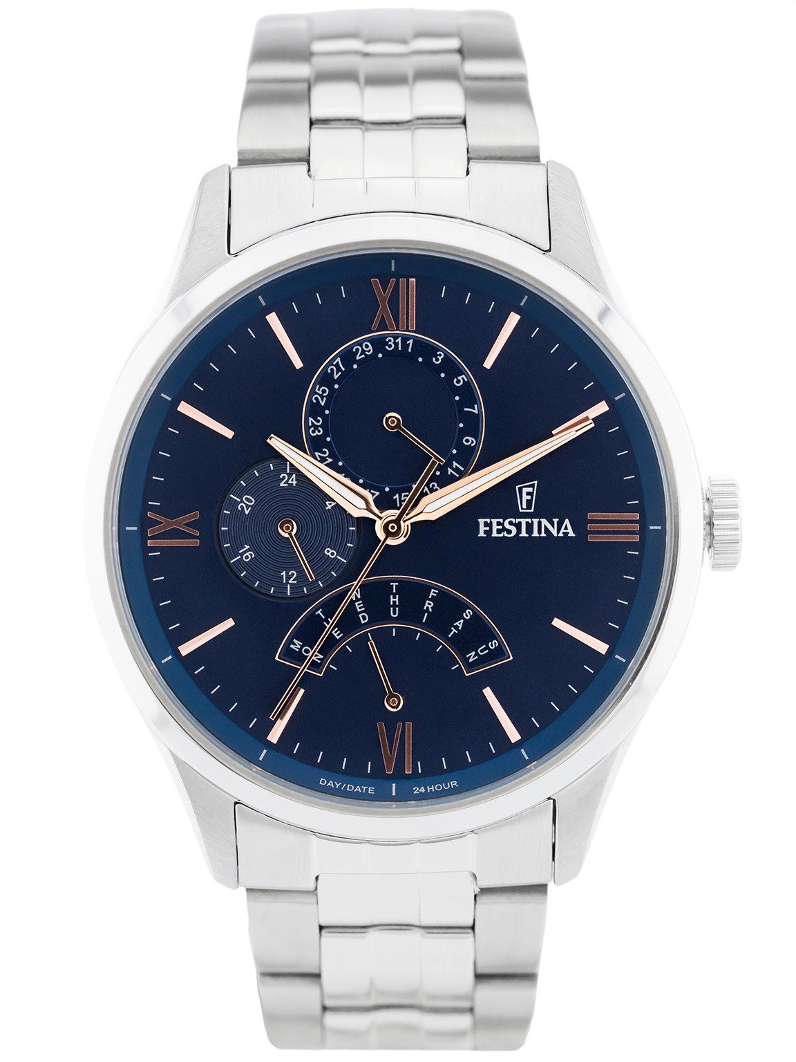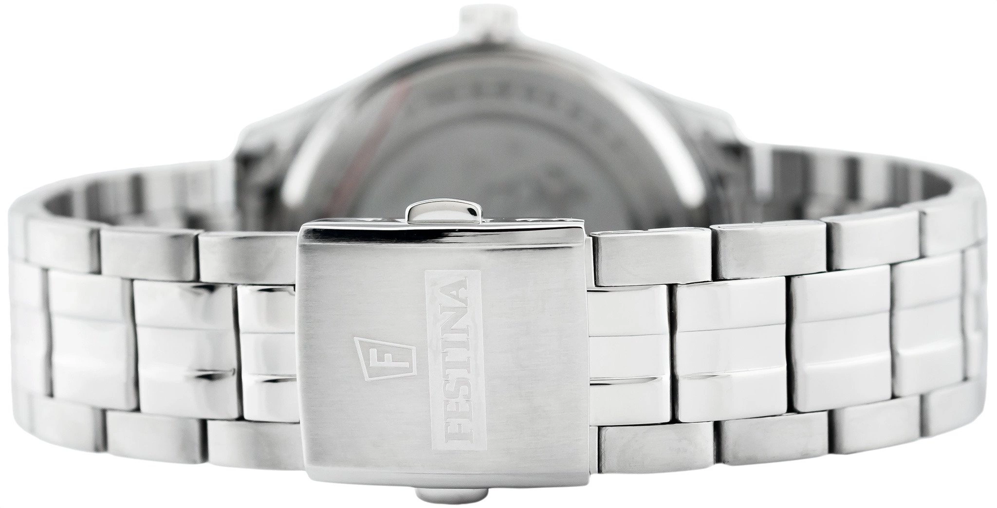 - Wodoszczelny Zegarek Męski Festina F16822/3 srebrny na bransolecie, posiada funkcję datownika.