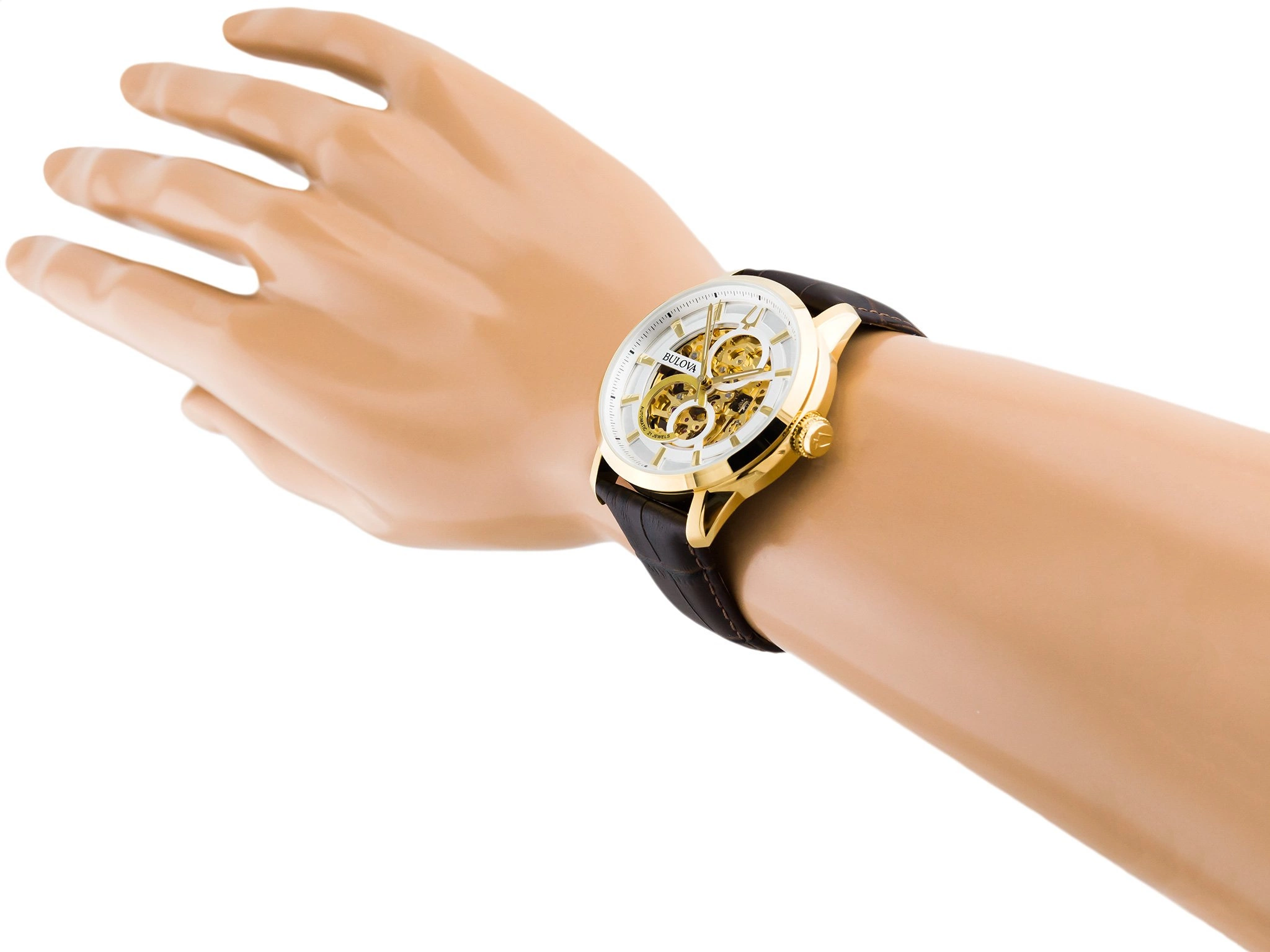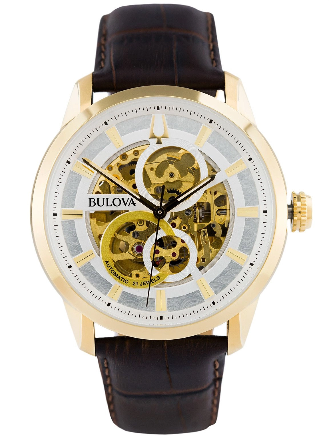 - Automatyczny Zegarek Męski Bulova 97A138 brązowy na pasku.