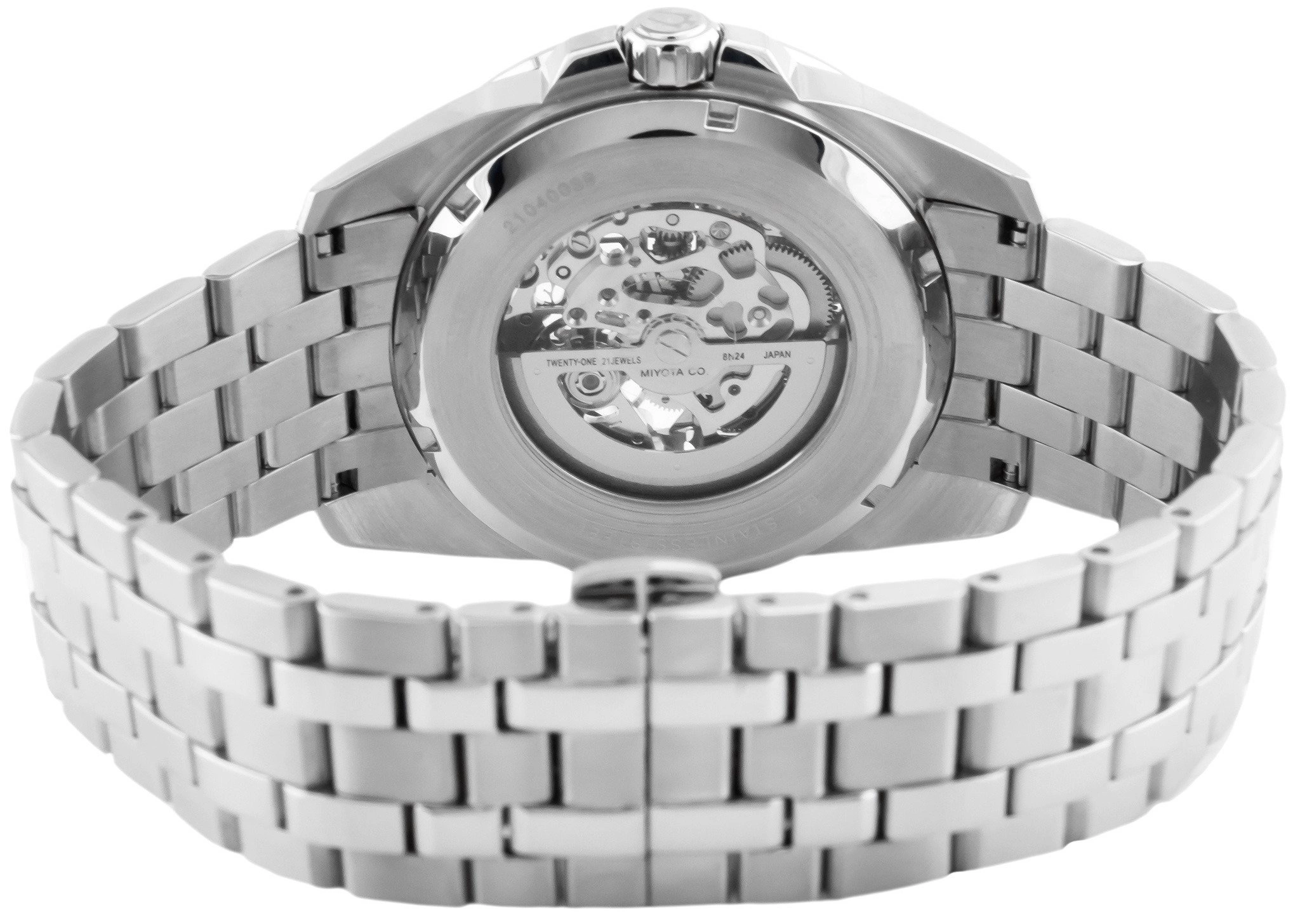 - Mechanizm: automatyczny MIYOTA -made in Japan, 21 kamieni. Mechanizm czerpie energię z ruchu ręki. Możliwość ręcznego nakręcania. Zegarek nie wymaga wymiany baterii, dzięki pracy automatycznego naciągu.