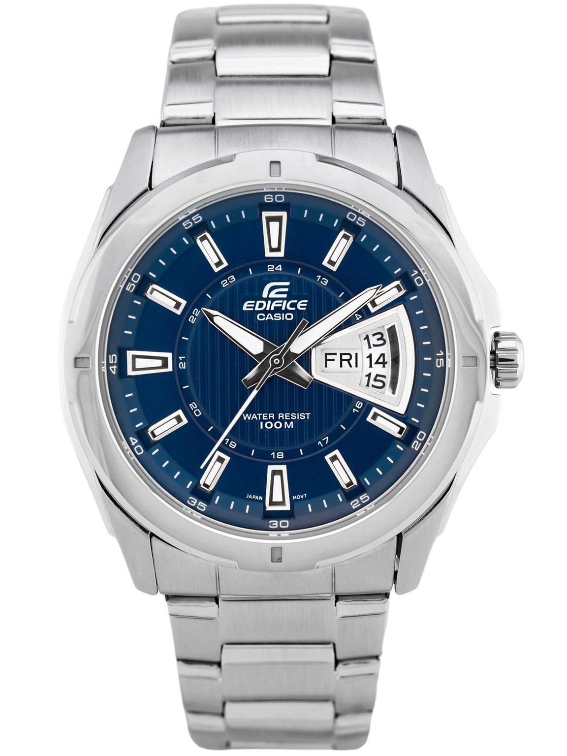 • Wodoszczelny Zegarek Męski Casio Edifice EF-129D 2AV srebrny na bransolecie, posiada funkcję datownika.